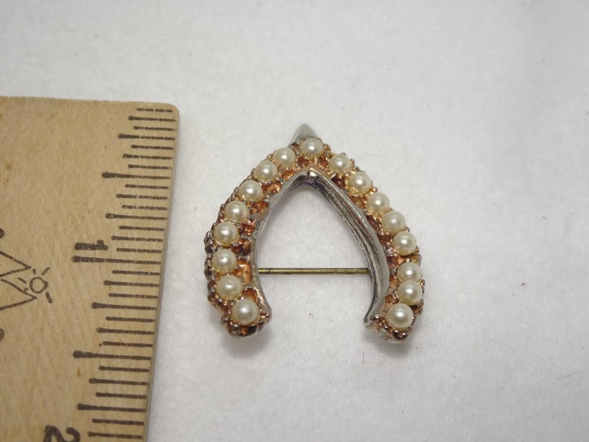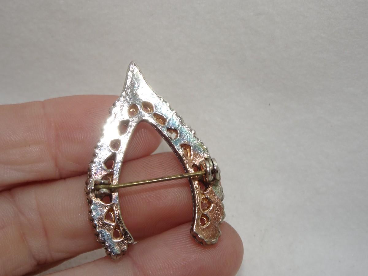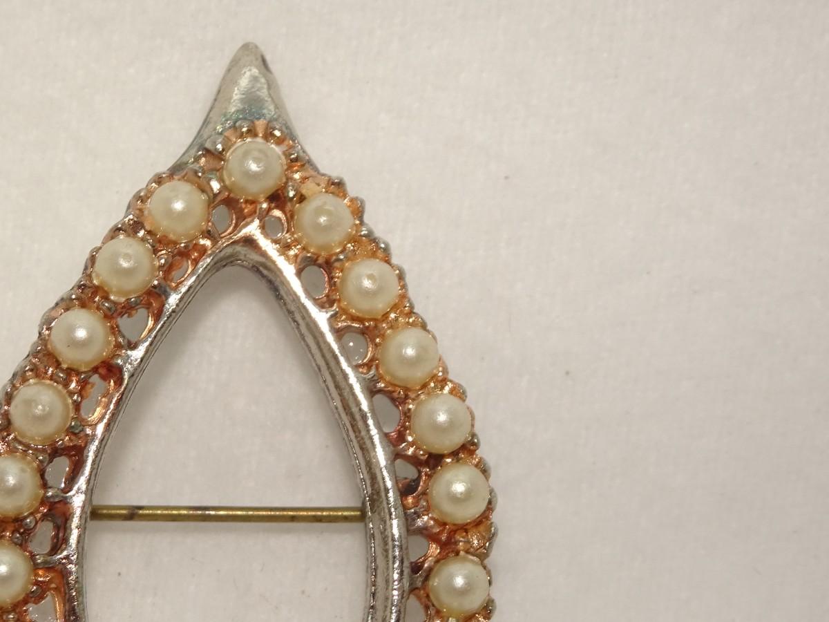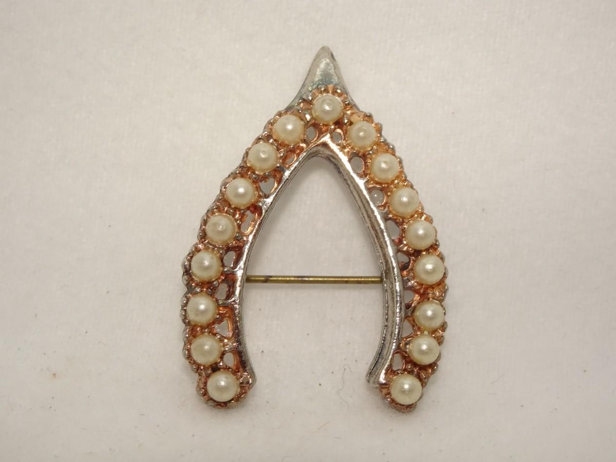 Vintage Mid Century Wish Bone Pin, Pearl Accents