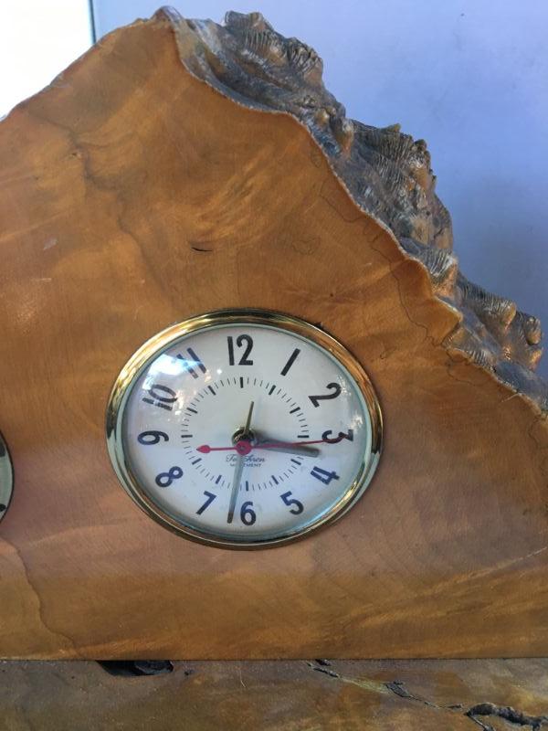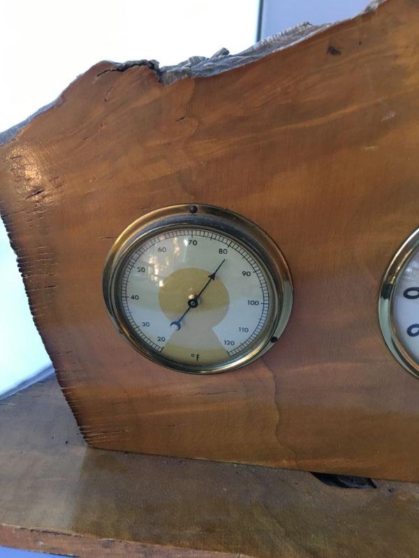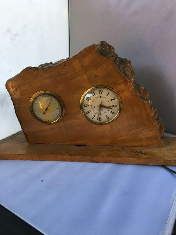 Vintage Mid Century Wood Frame Electrical Clock and Barometer