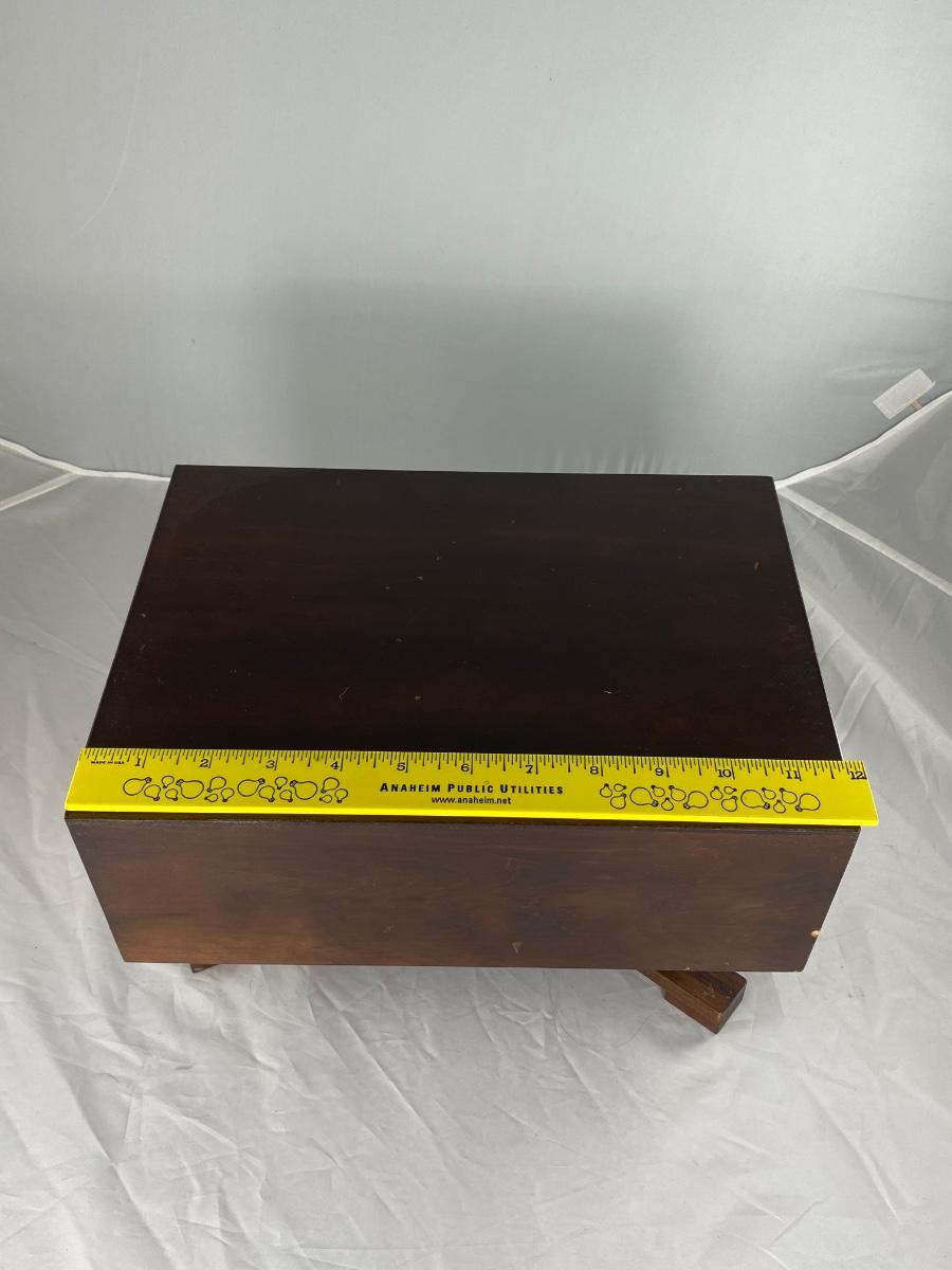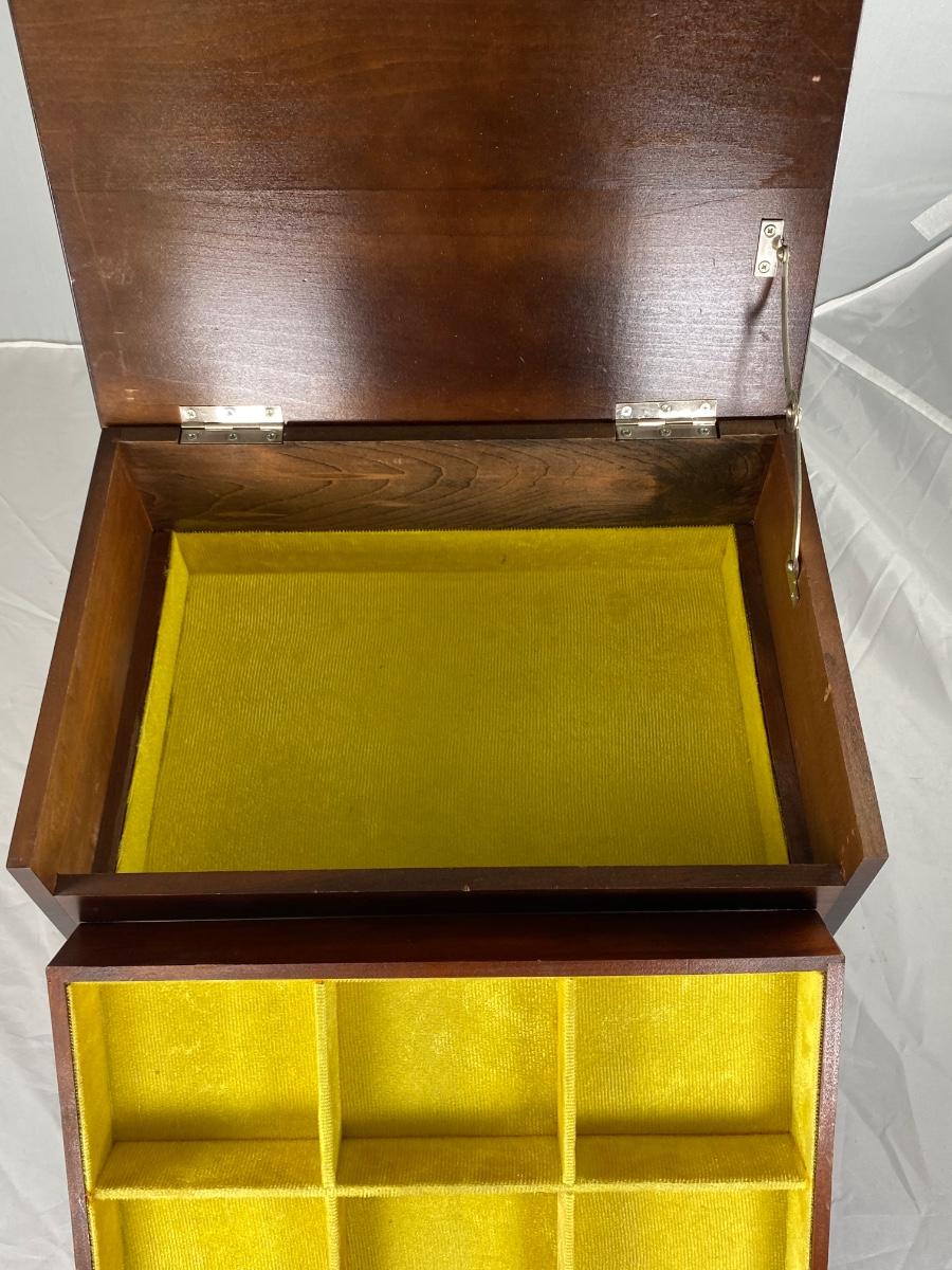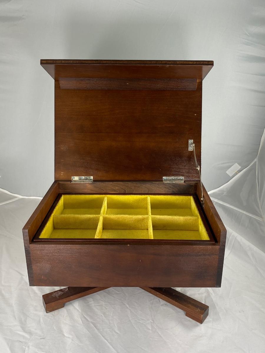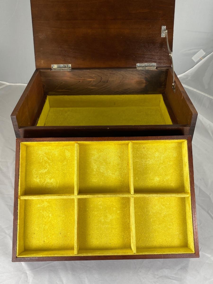 Vintage Mid Century Wooden Jewelry Box with Yellow Gold Lining