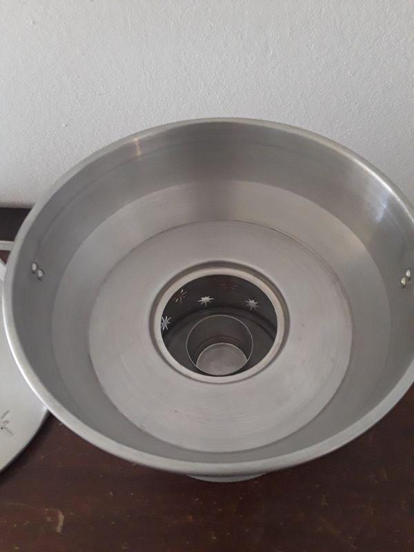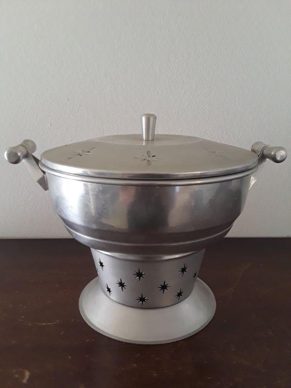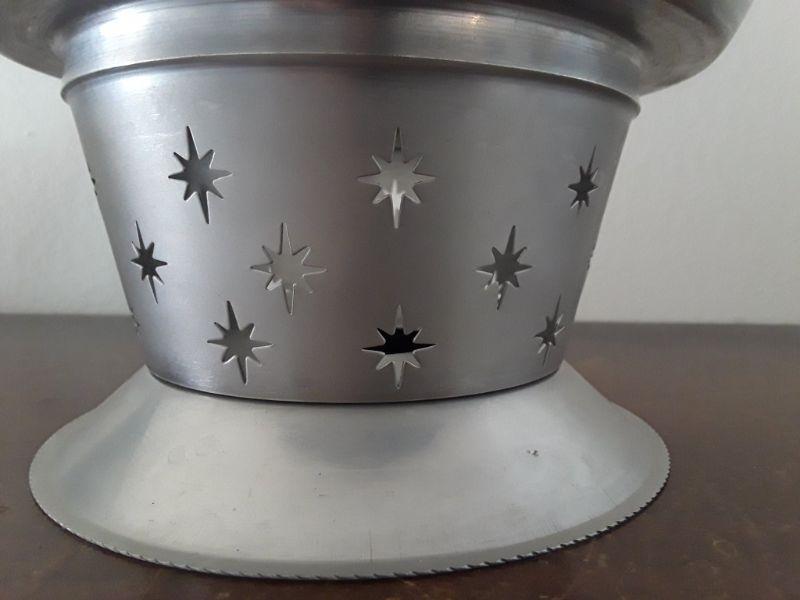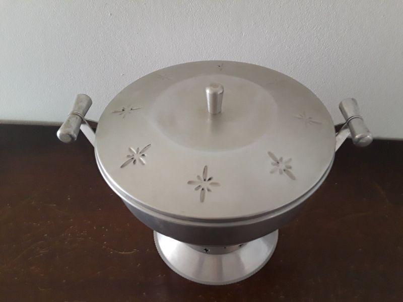 Vintage Buffet chaffing dish. Midcentury atomic look with the starburst pattern. Made in Italy. Excellent condition. Does not have glass bowl, this auction is for the metal holder only.