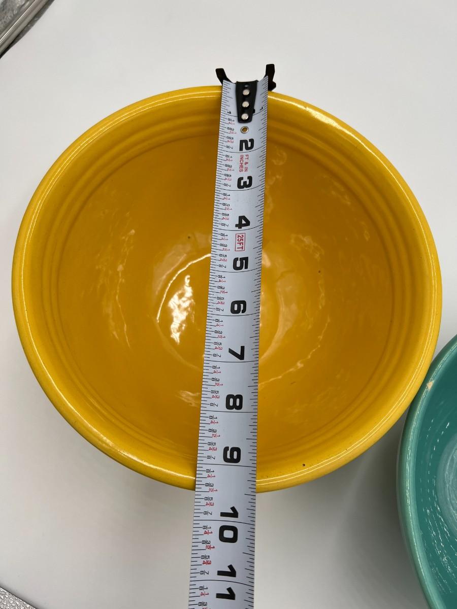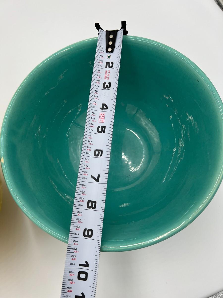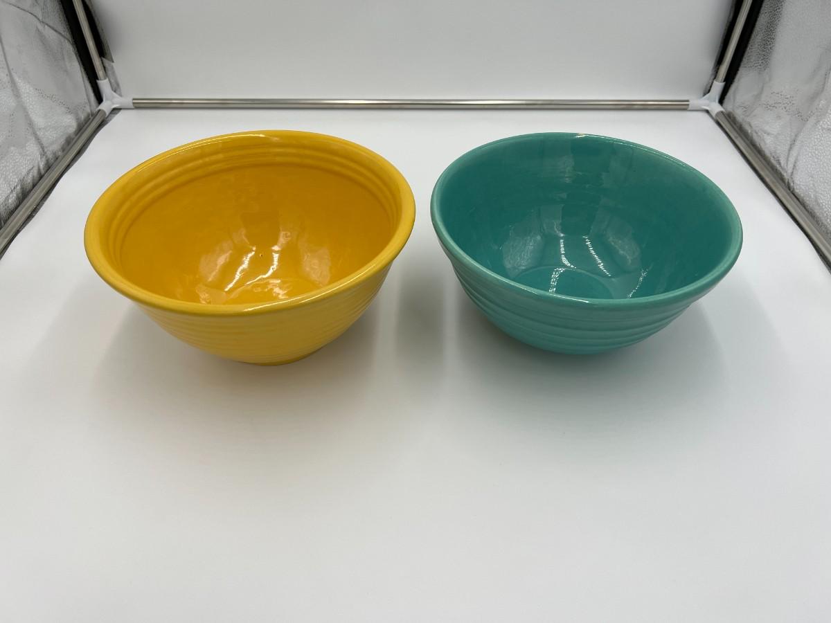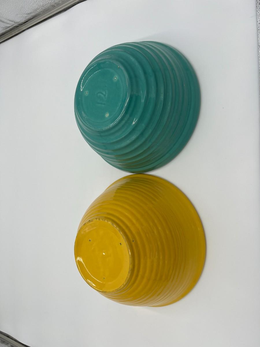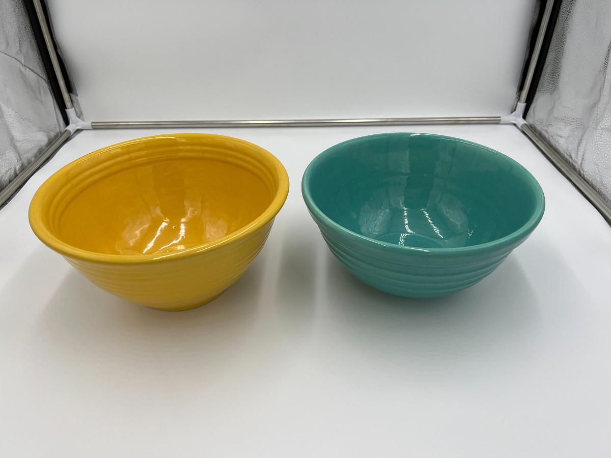 Vintage Midcentury Bauer #12 Ringware Mixing Bowls in Turquoise Blue and Yellow