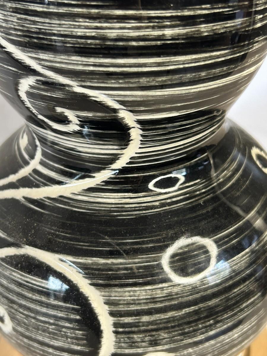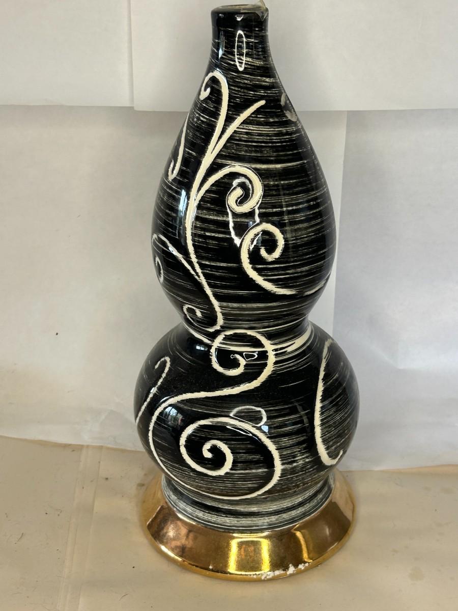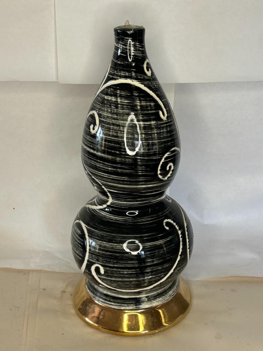 Vintage Mid-Century Black White Vines & Detail Table Lamp