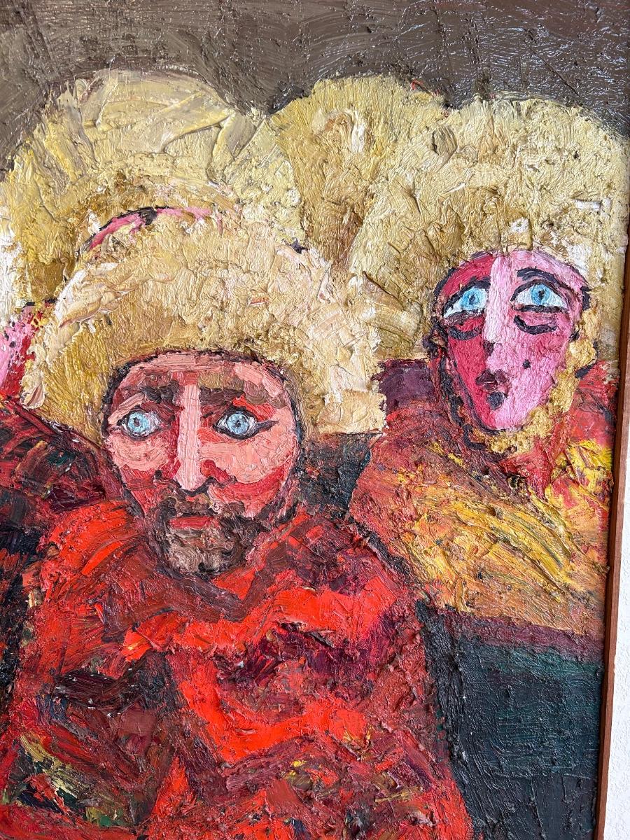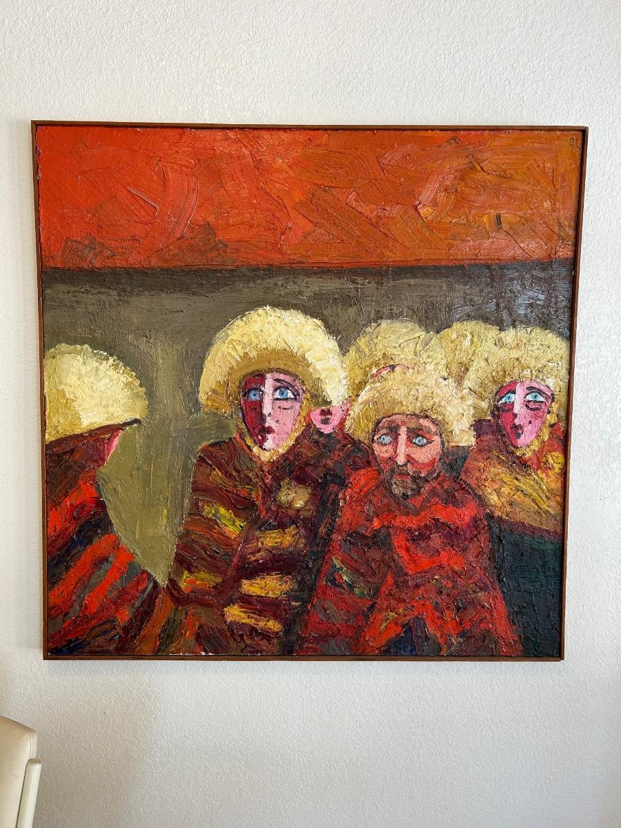 Vintage Midcentury Brutalist Art Parachicos 1963 Known Artist Joyce Rezendes Signed on Back Large 4'