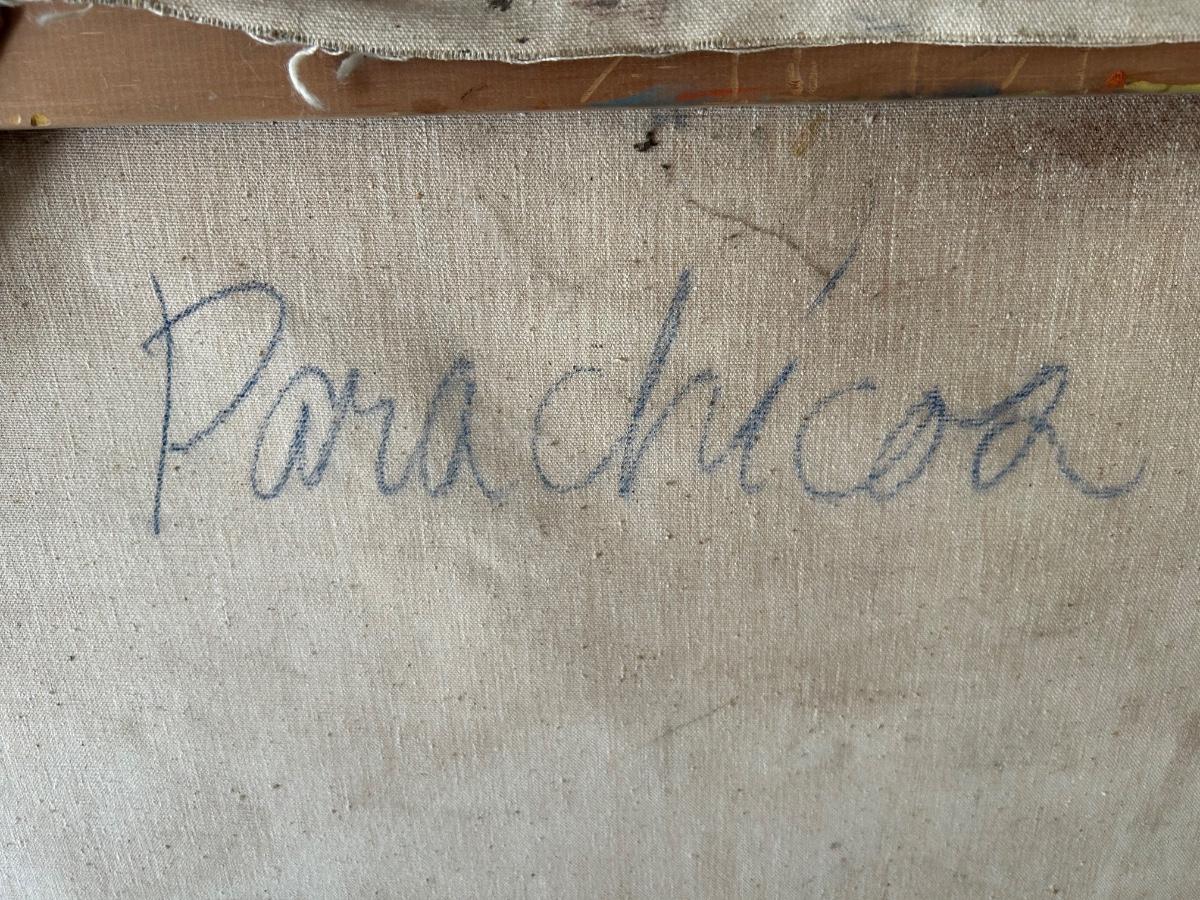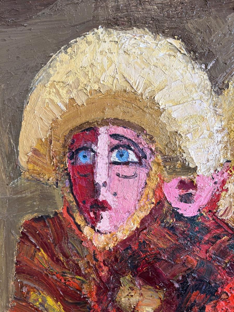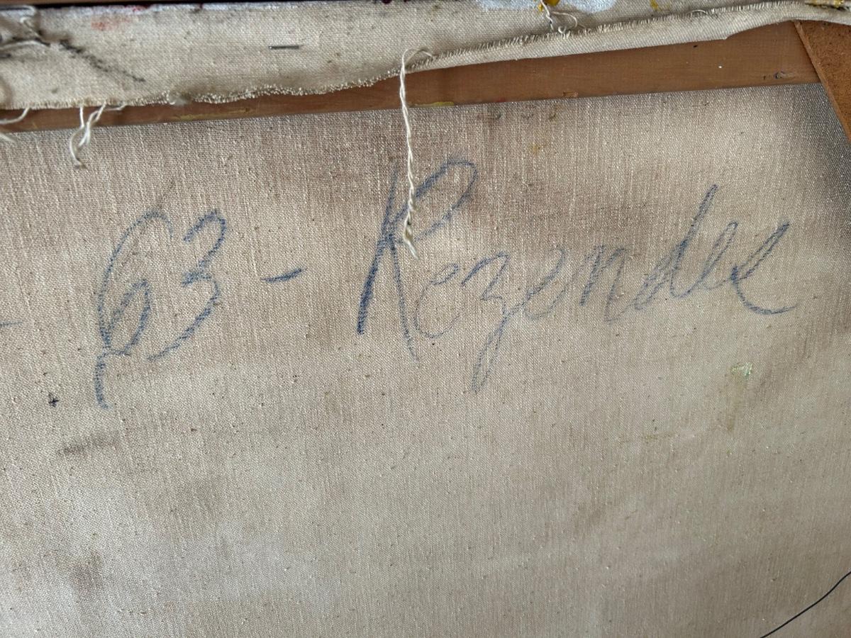 Vintage Midcentury Brutalist Art Parachicos 1963 Known Artist Joyce Rezendes Signed on Back Large 4'. In good displayed condition. Below is an article on artist featuring this piece. https://www.artforum.com/print/reviews/196404/joyce-rezendes-72893