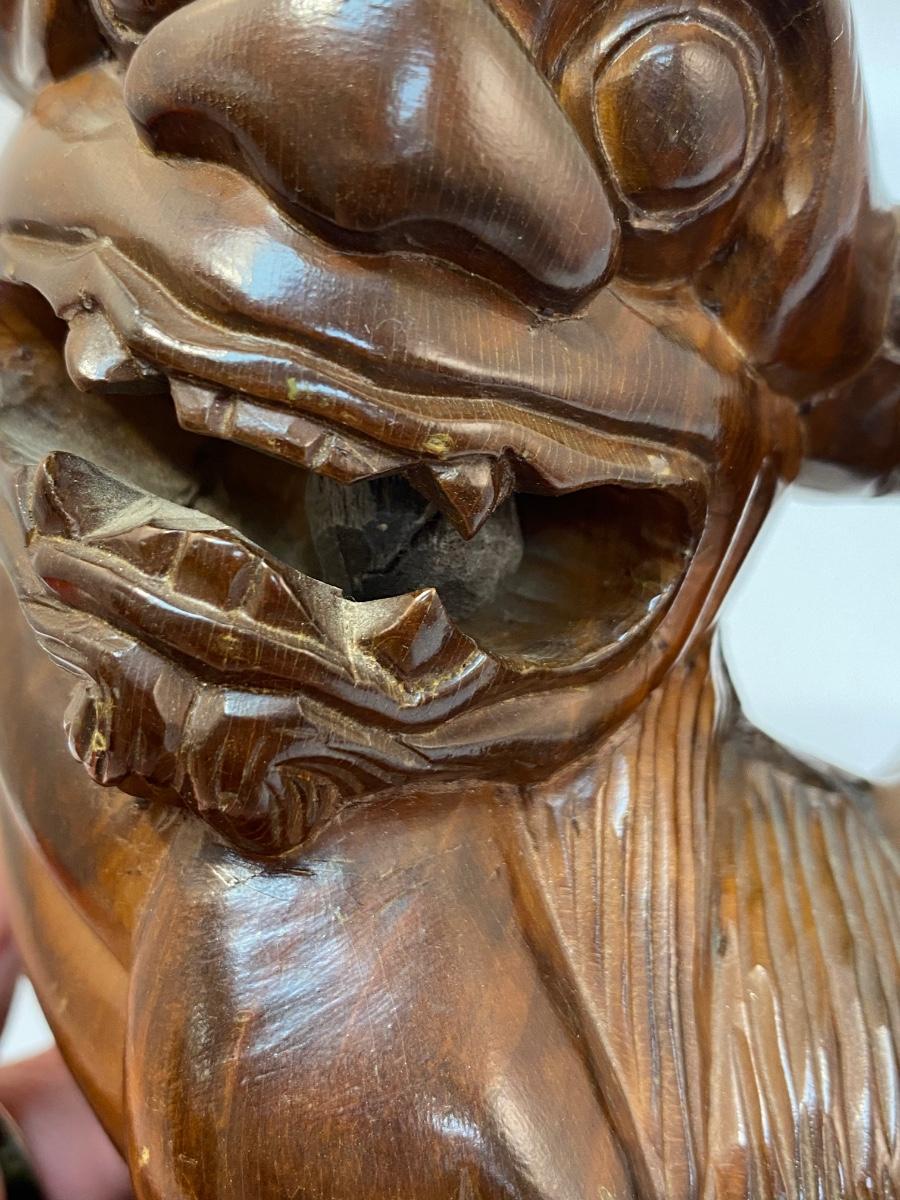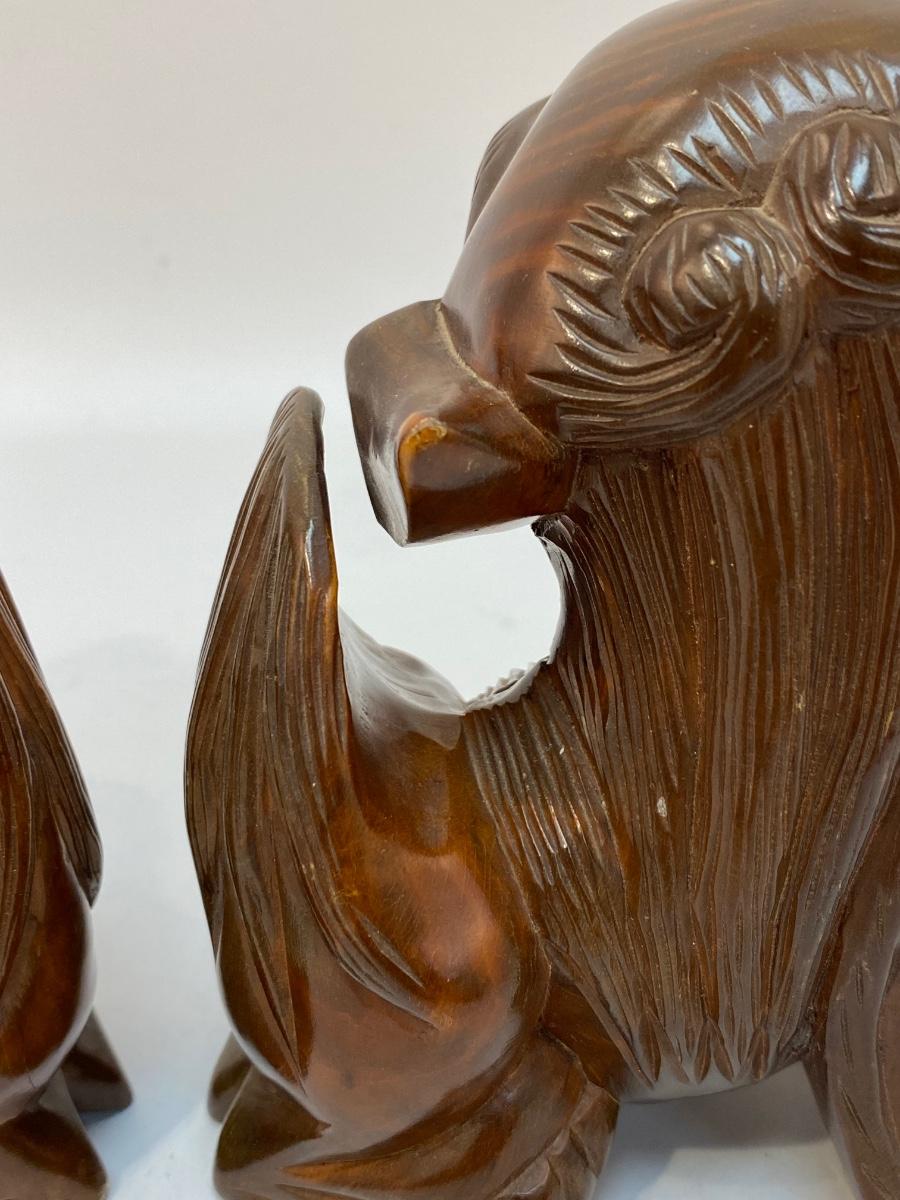 Vintage Midcentury Carved Wood Foo Dogs Bookends Figurines