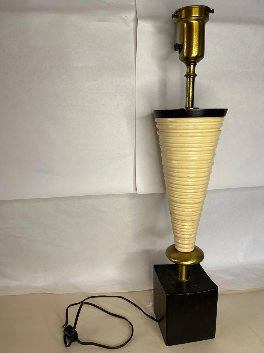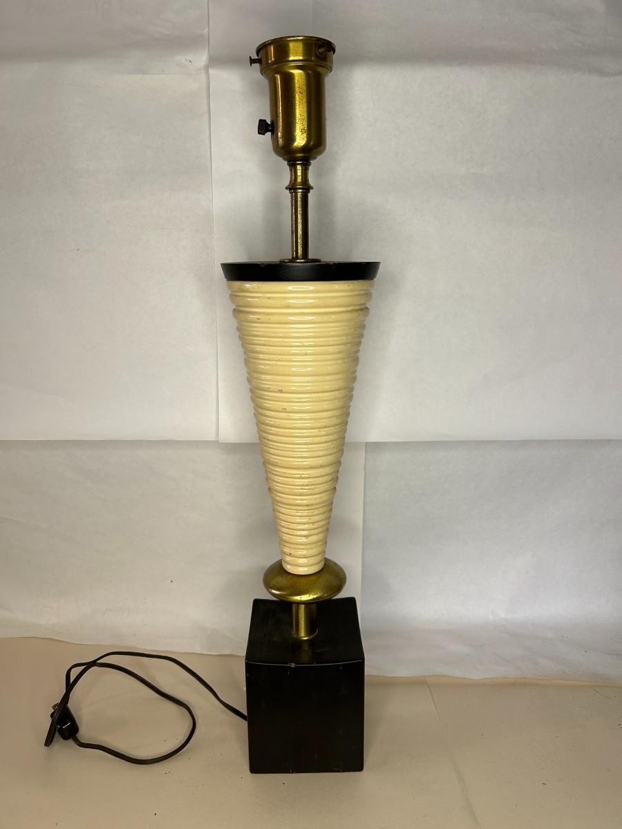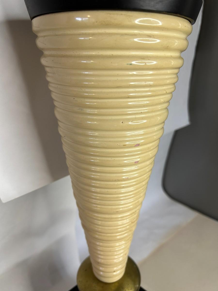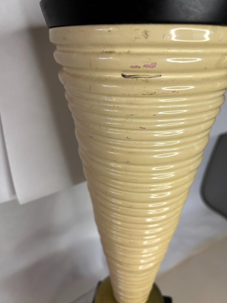 Disclosures: We tested the lamp, and it is working correctly. As with all vintage electrical items, we recommend professional evaluation. The cone has a few imperfections, hence the lower price. (See pictures for details.)
