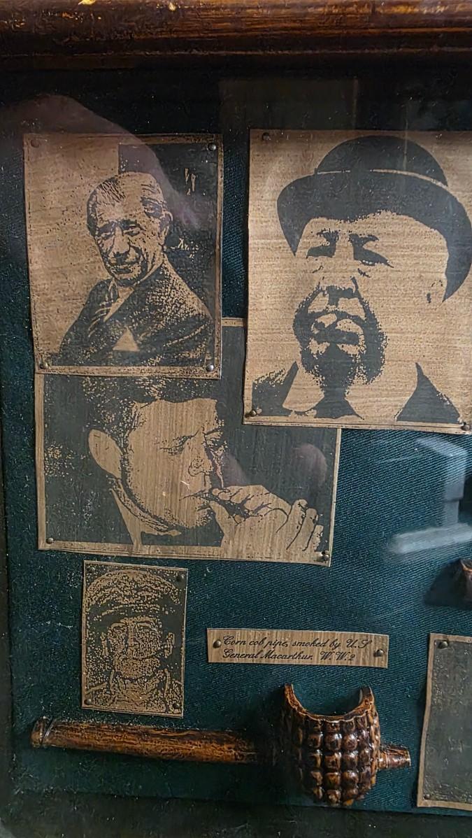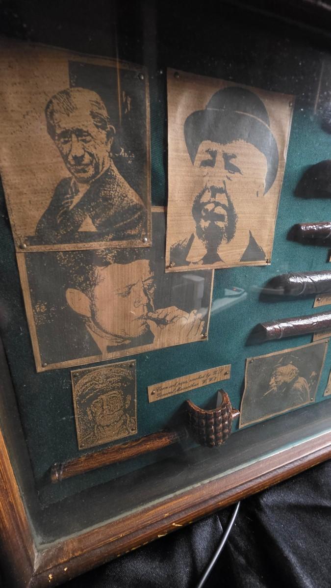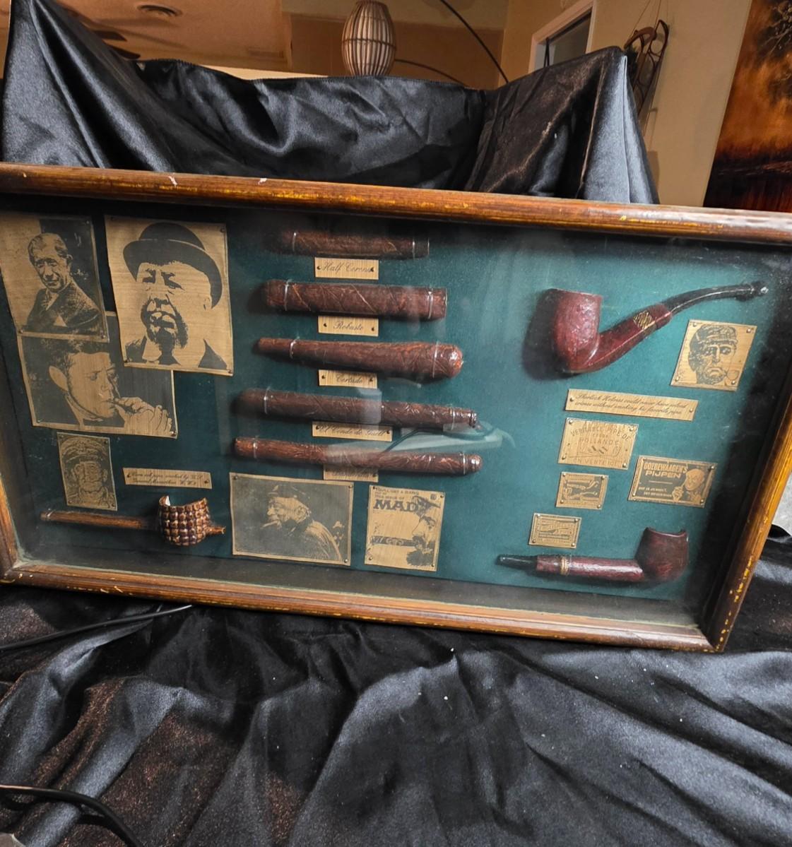 Vintage Mid-Century Cigar & Pipe Memorabilia Shadow Box Display | Half Corona Robusto Cordoba Cigars | Sherlock Holmes Labels | Corn Cob Pipe Holder | 20" x 16" Tobacco Ephemera