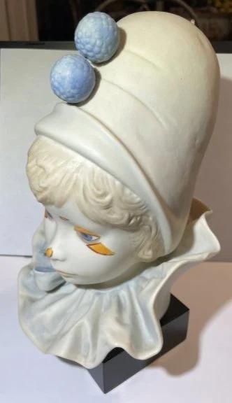 Vintage Mid-Century Cybis "Young Girl Clown Bust" on a Wooden Base - 9.5" Tall in VG Preowned Condition. $15 Domestic Shipping.