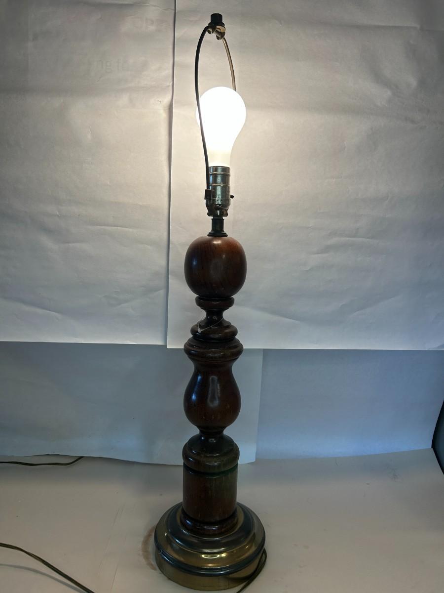 Beautiful walnut and brass lamp in excellent structural and working condition