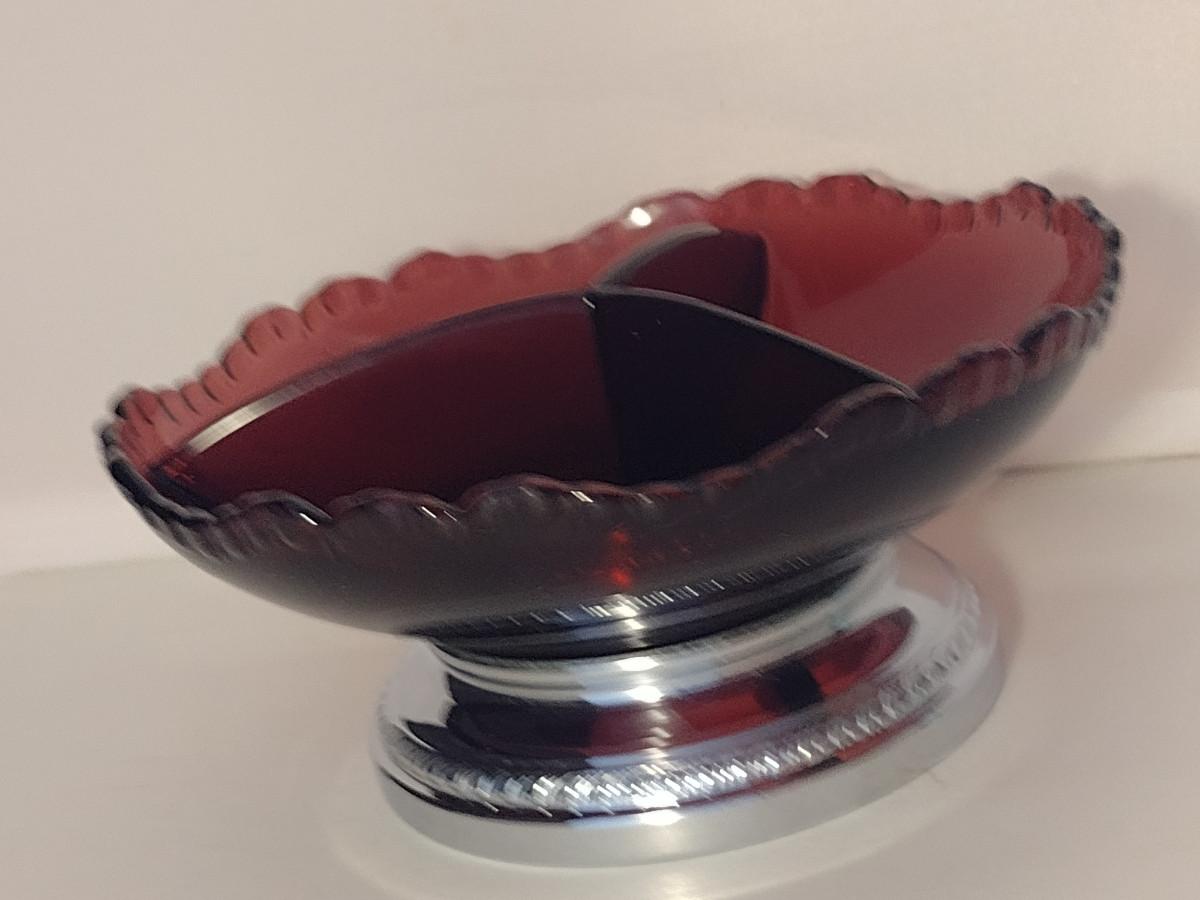 Vintage Mid-Century Krome Kraft Farber Bros Glass Three Section Divided Dish
