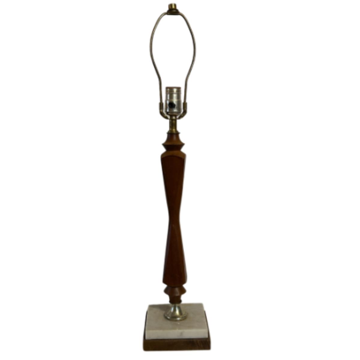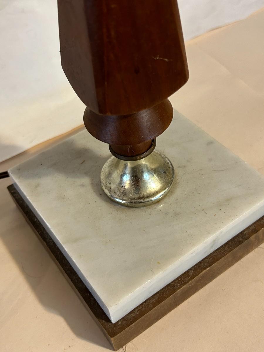 Vintage Mid-Century Minimalist Teak Table Lamp with Marble Base