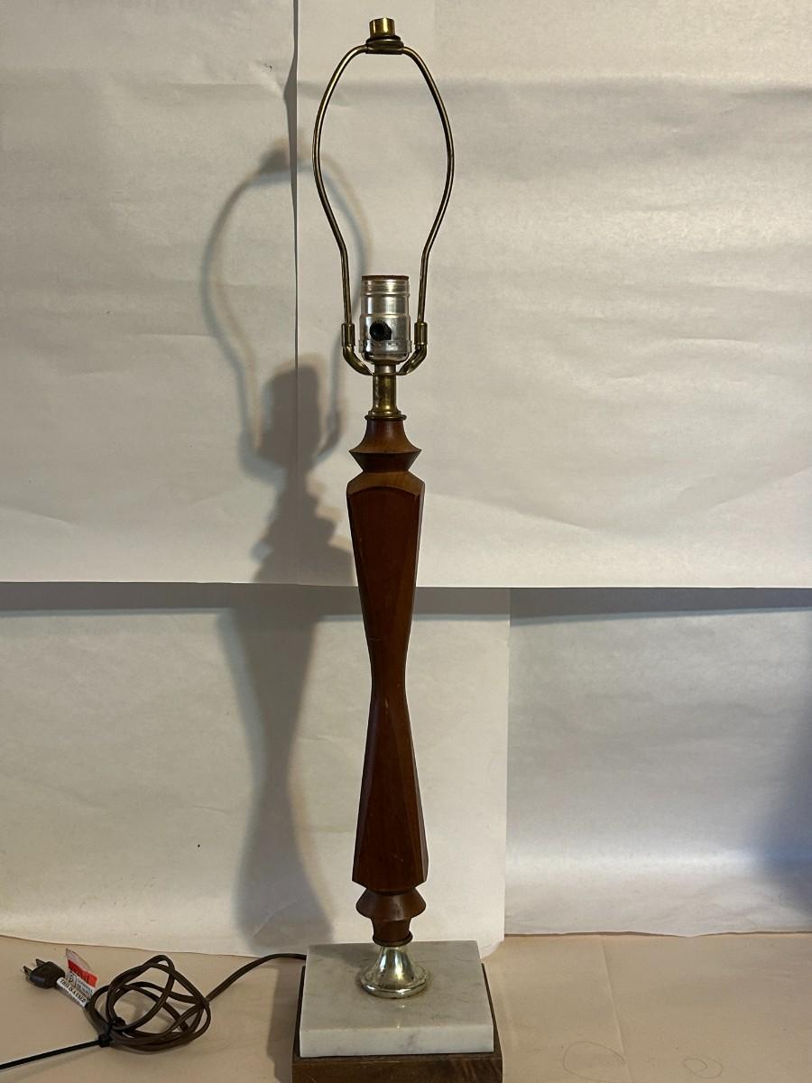 Beautiful, elegant teak lamp on a gorgeous marble base.