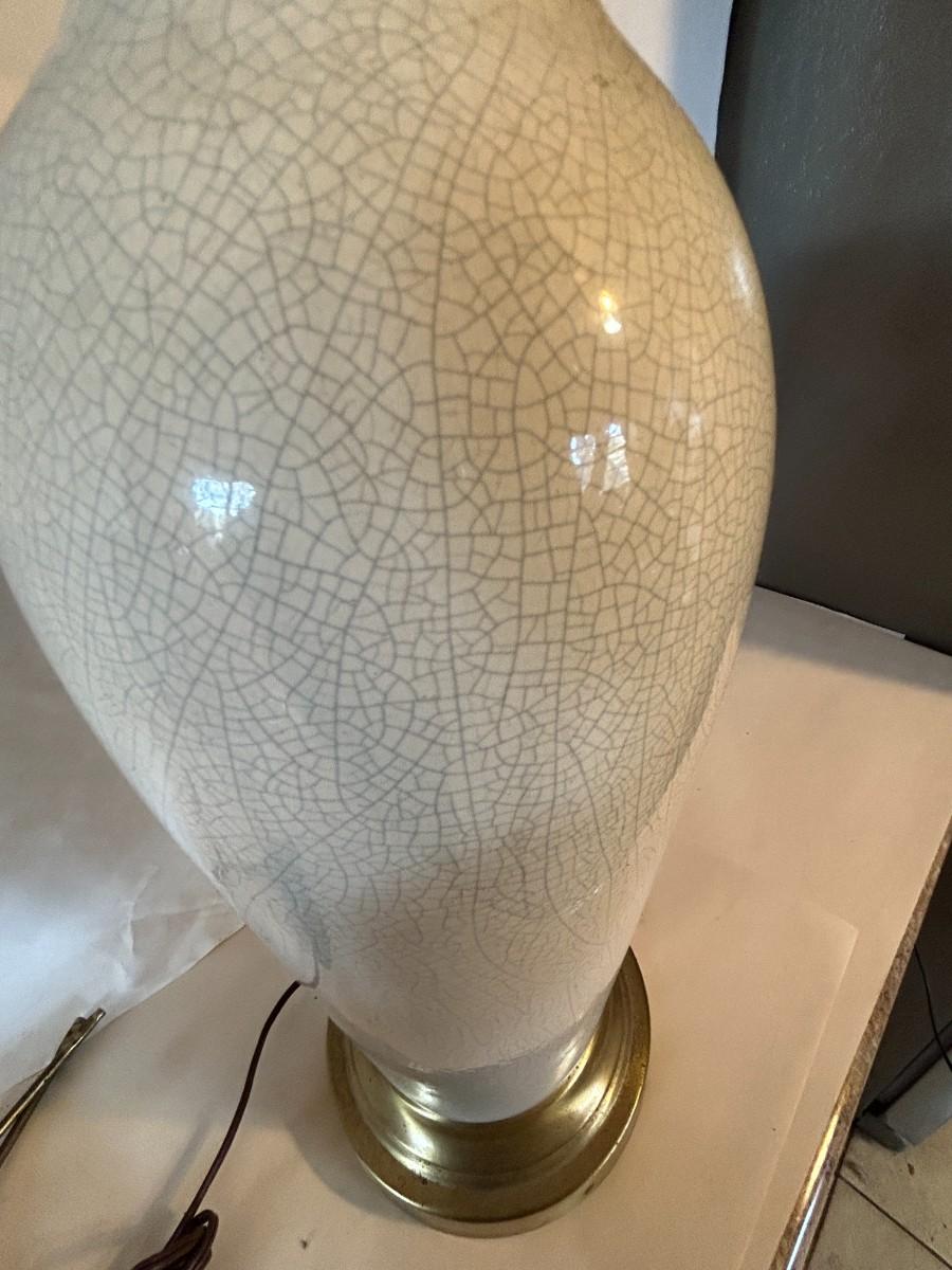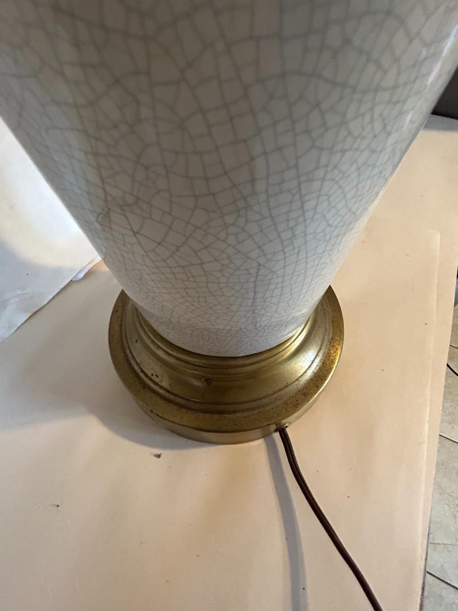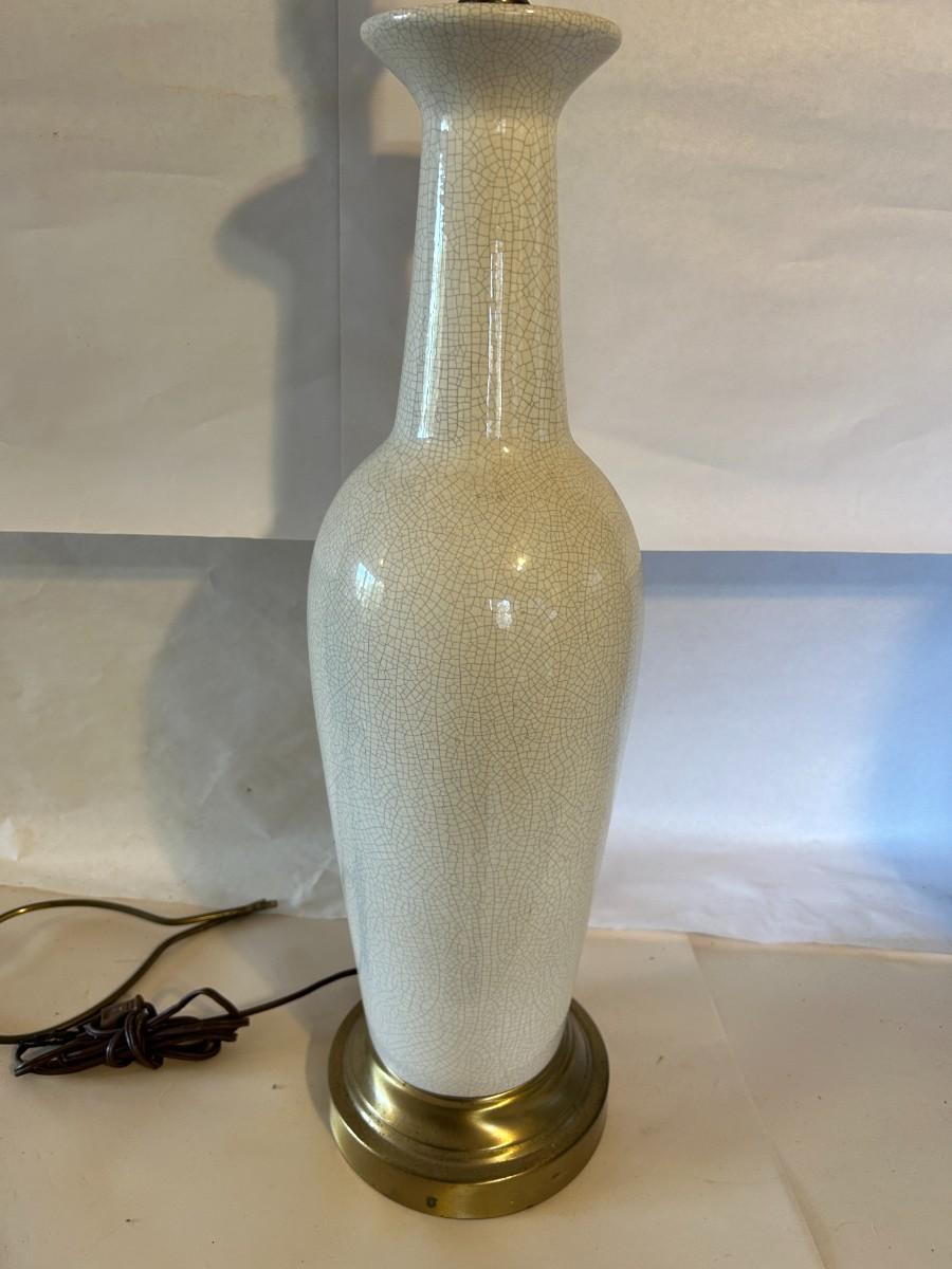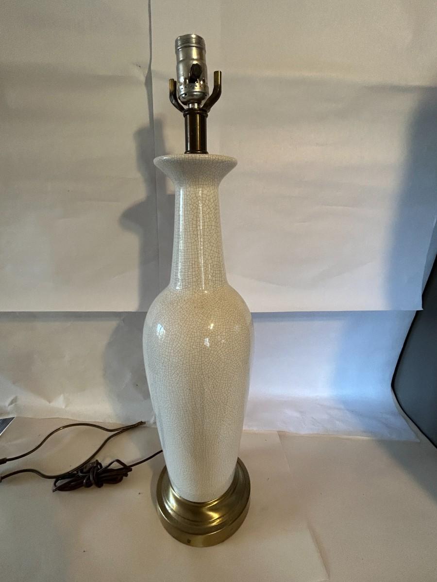 Vintage Mid-Century Modern Crackle Lamp with Brass Base - Excellent