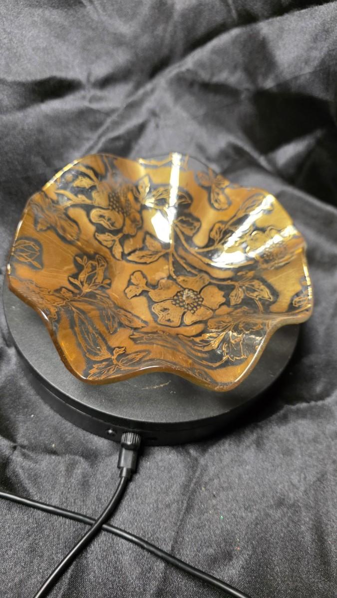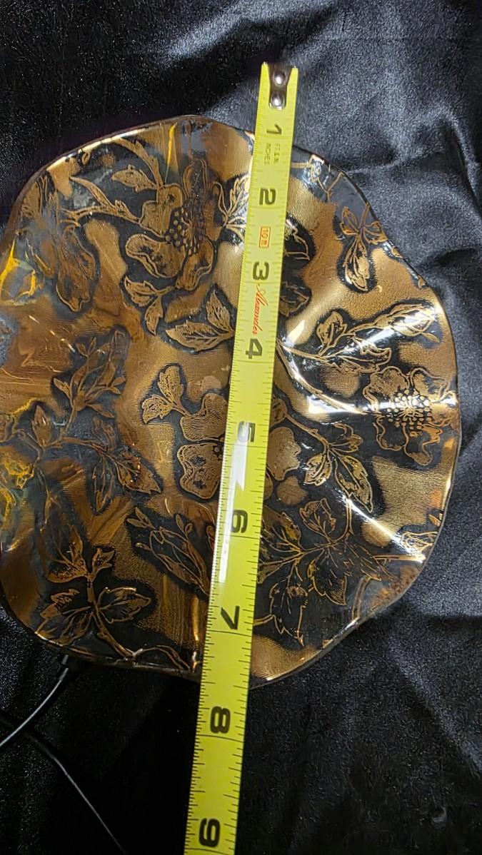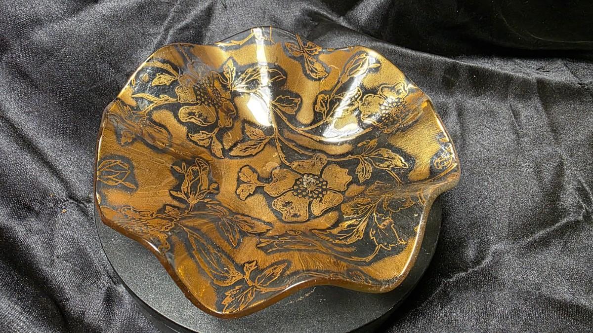 Vintage Mid-Century Modern Gold Floral Ruffled Glass Bowl – Handkerchief Edge Candy Dish
