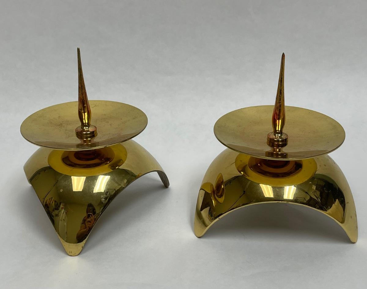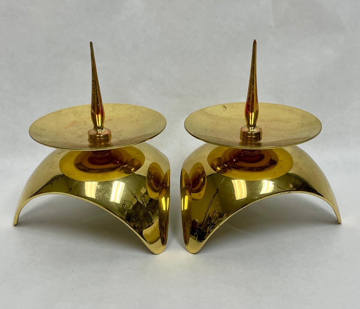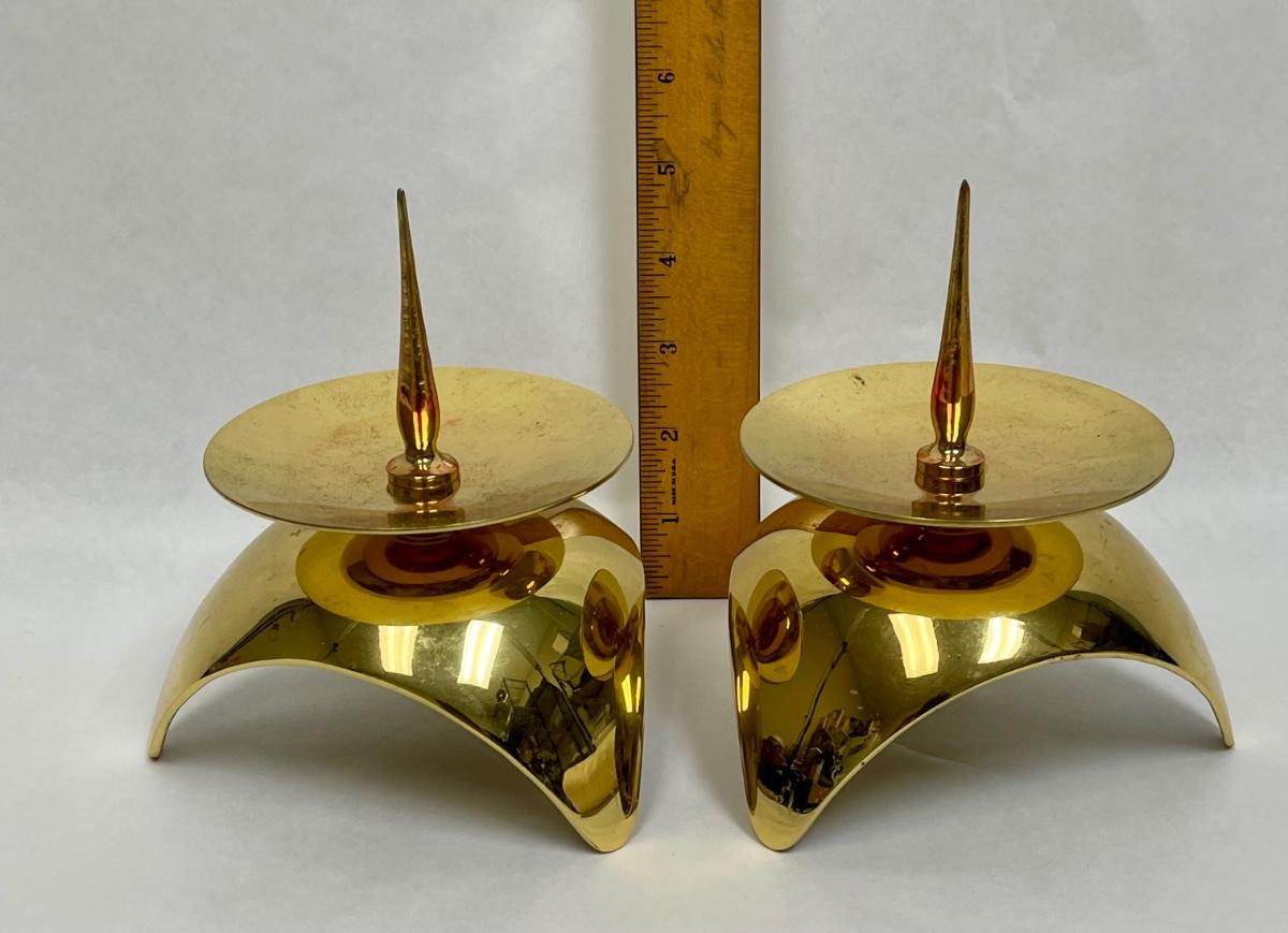 Vintage Mid-Century Modern Space Age Atomic Brass Candle Holders