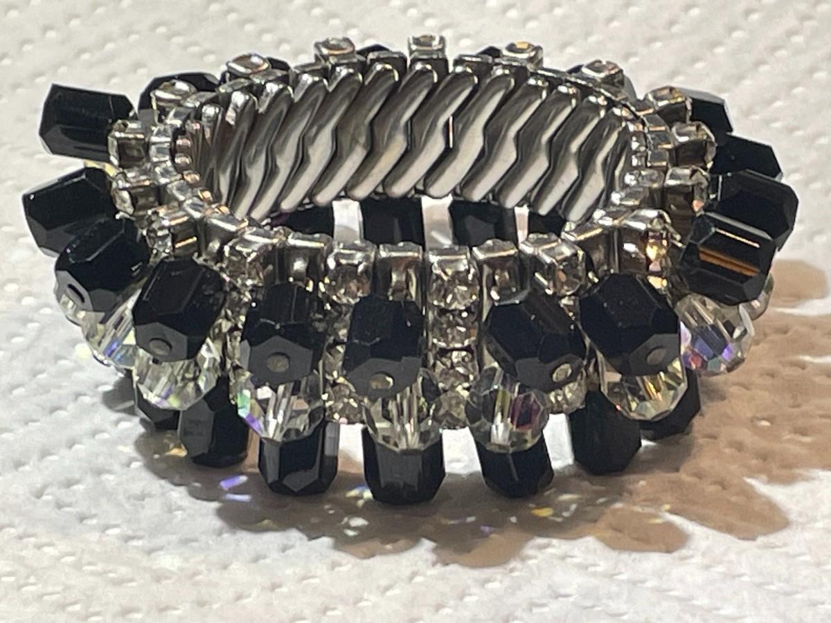 Vintage Mid-Century Rhinestone & Crystal Stretch Bracelet in VG Preowned Condition 7-8" in Size.
