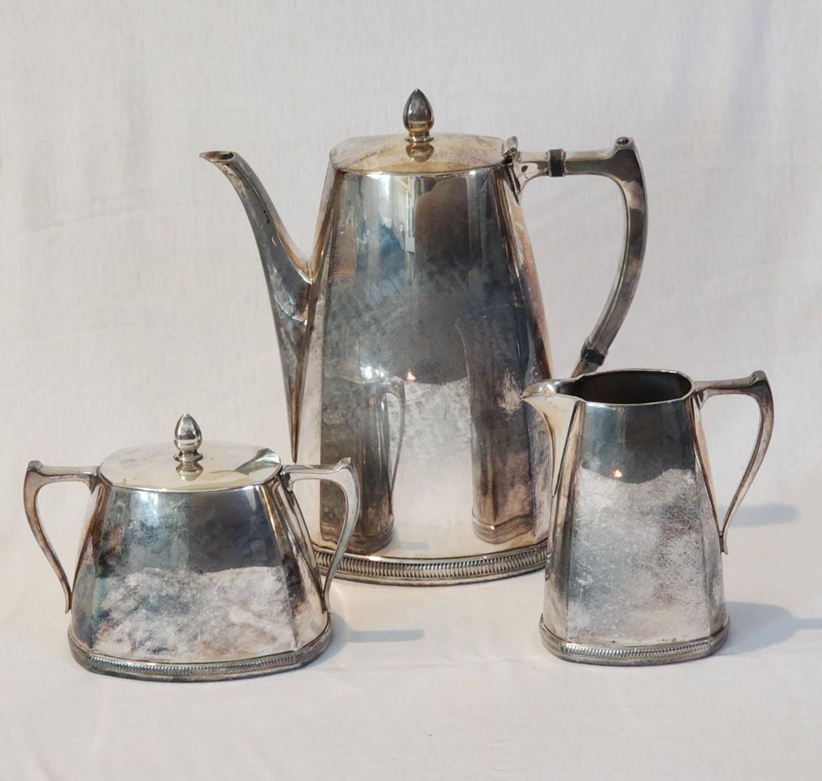 Vintage Mid-Century Silverplate Teaset, stamped "Mercury 600" - Teapot, creamer, sugar