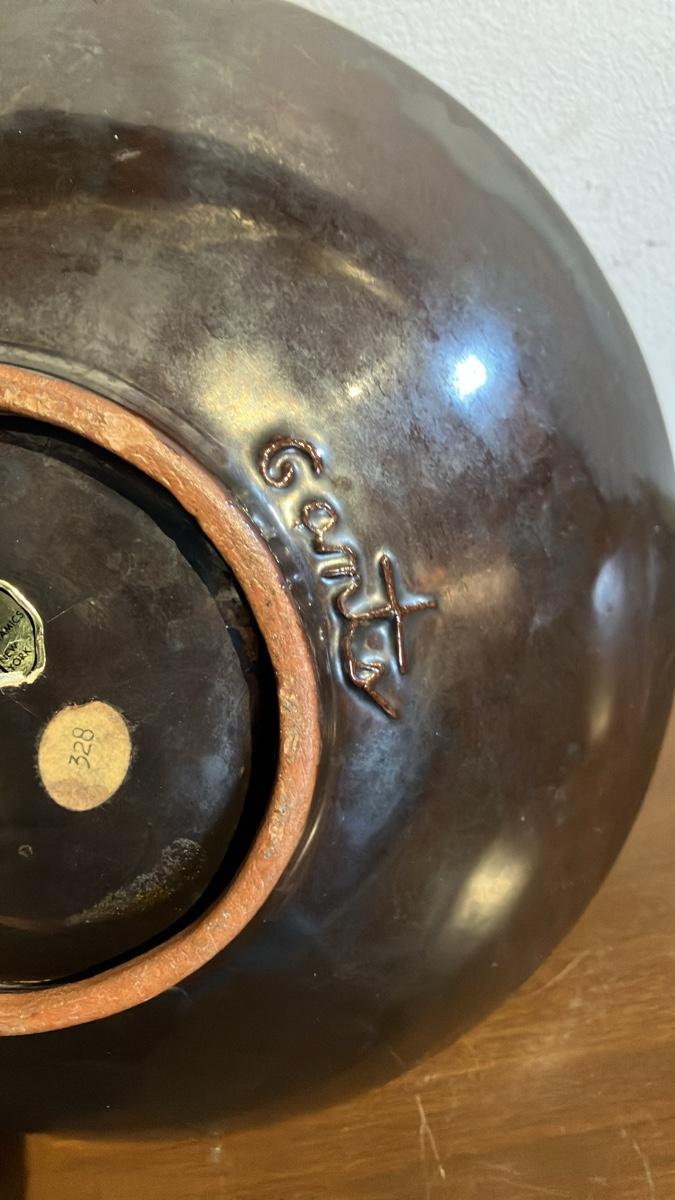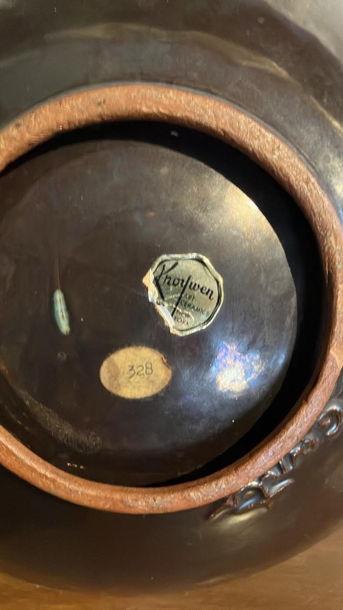 This bowl would make a stunning decorative centerpiece or serving dish, blending functionality with bold artistic appeal. Despite extensive research, no definitive records of the exact "KNOYWEN" studio or "GANTO" artist were found, suggesting it may be from a small, independent New York-based potter or limited production run from the mid-century period.