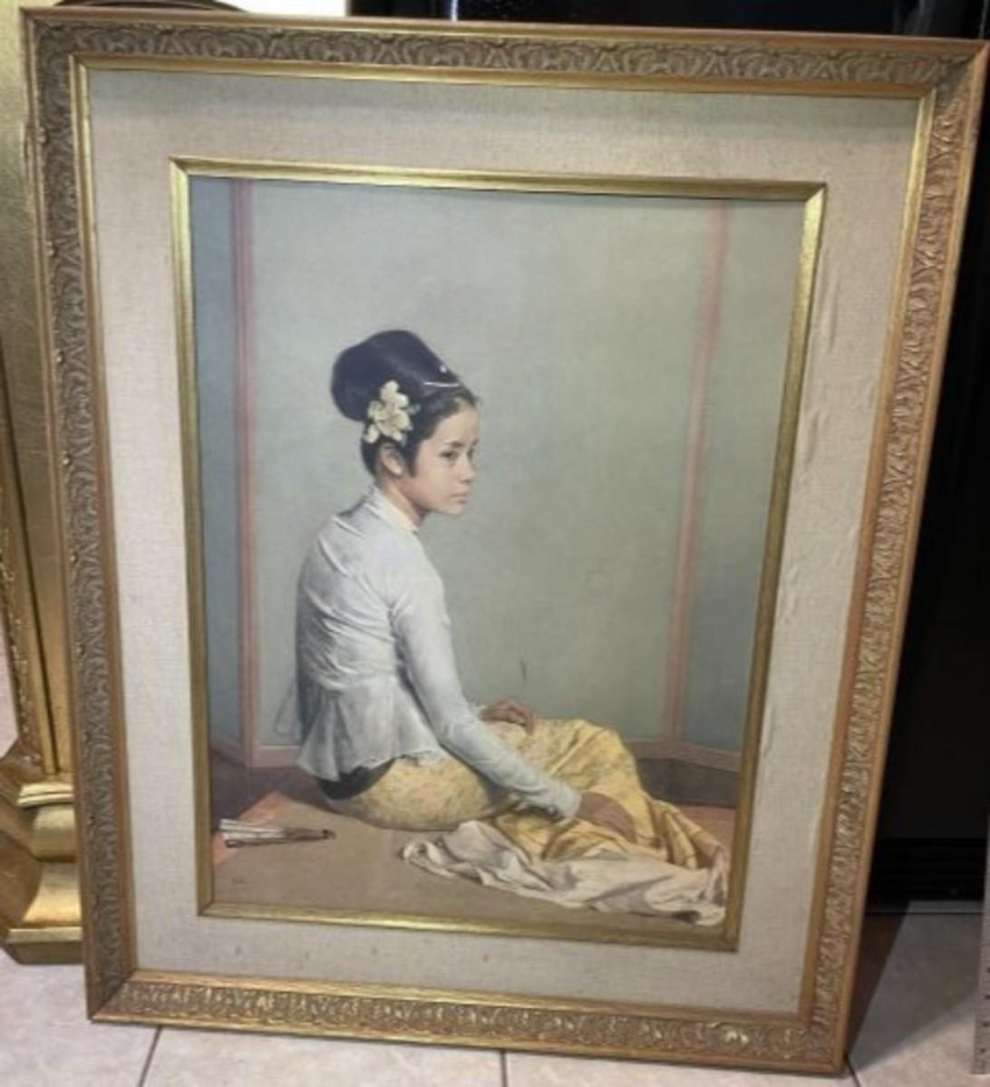 Vintage Mid-Century Young Asian Girl Print on Board in a Wooden Frame Size 25.5" x 32". FREE Local Pickup Only by Appointment in Berlin, NJ 08009.