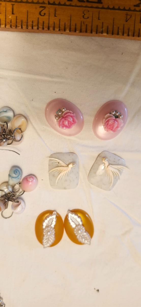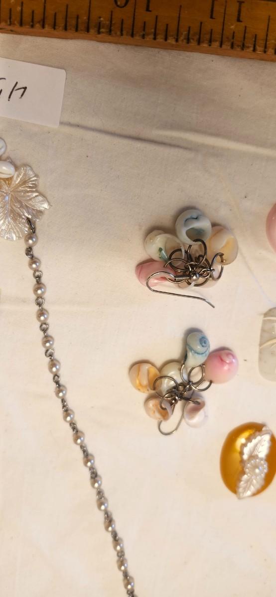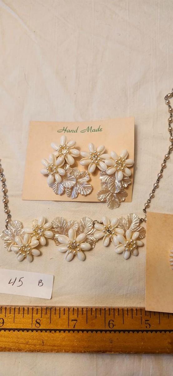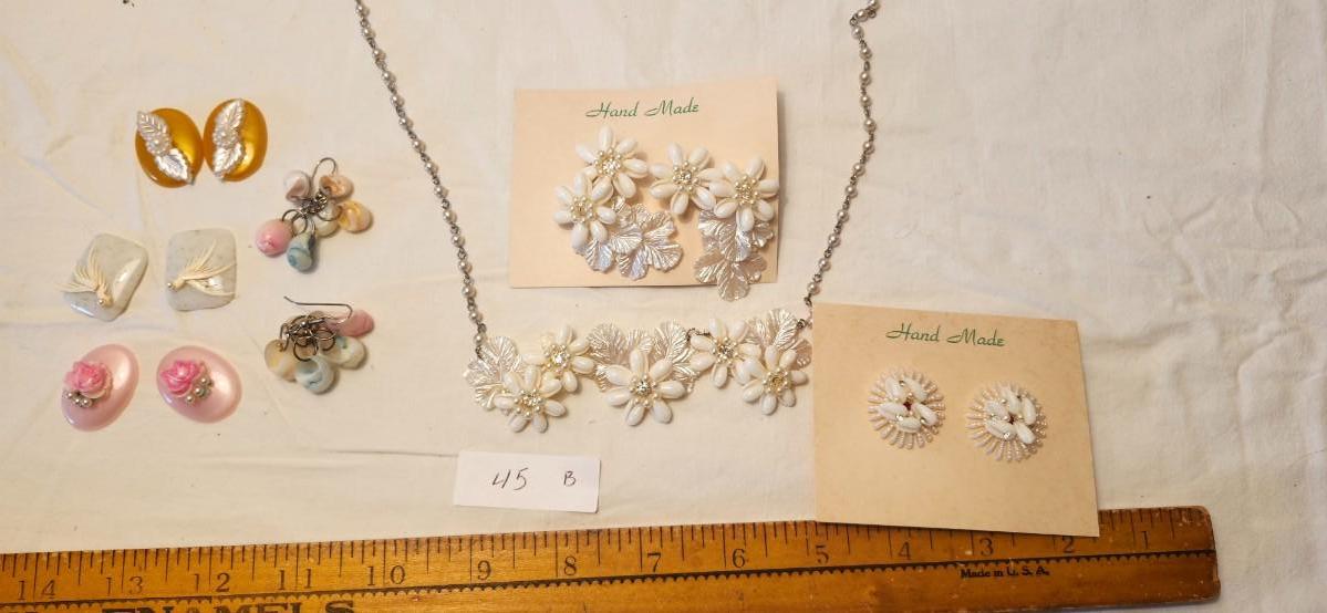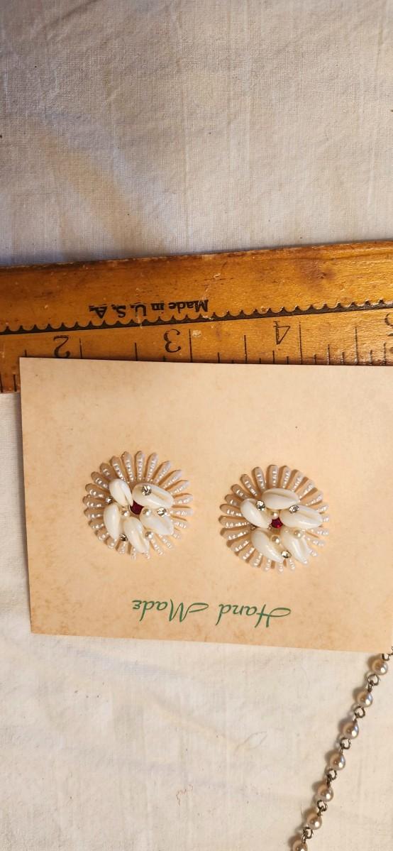 Vintage Mid-CenturySeashell Earrings & necklace From The 50s/60s On Their Original Card! Clips