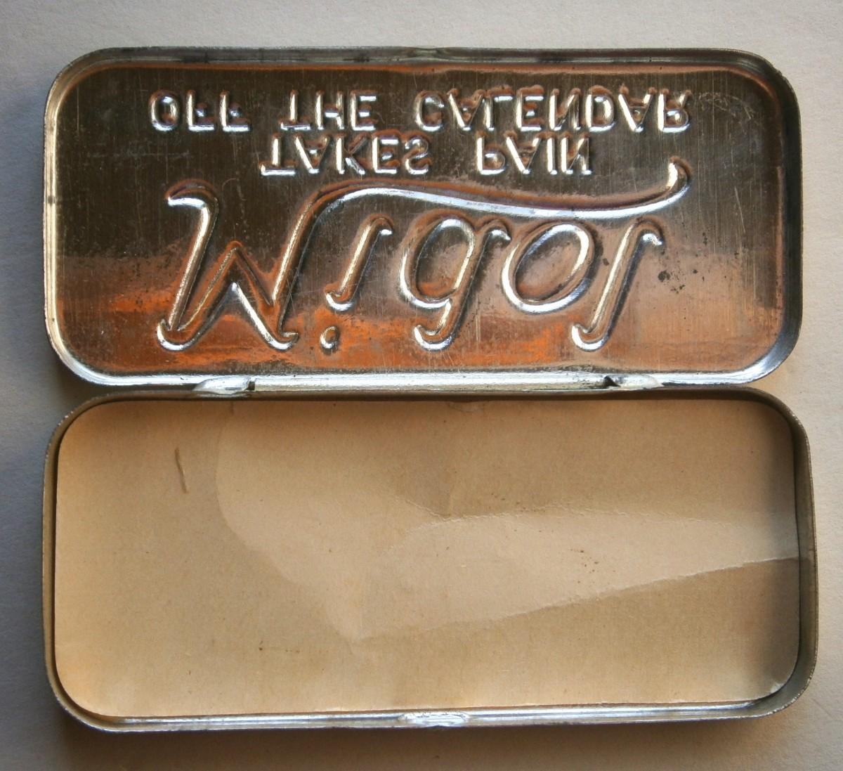Vintage "Midol" Advertising Tin, 2 3/4 in. long, lithographed tin.