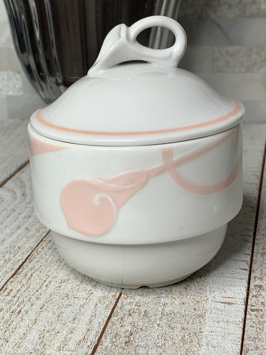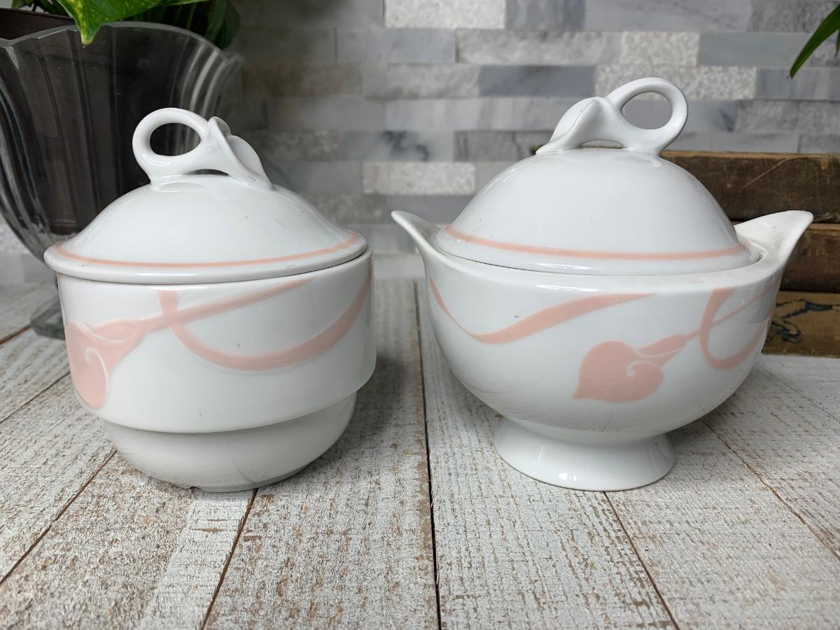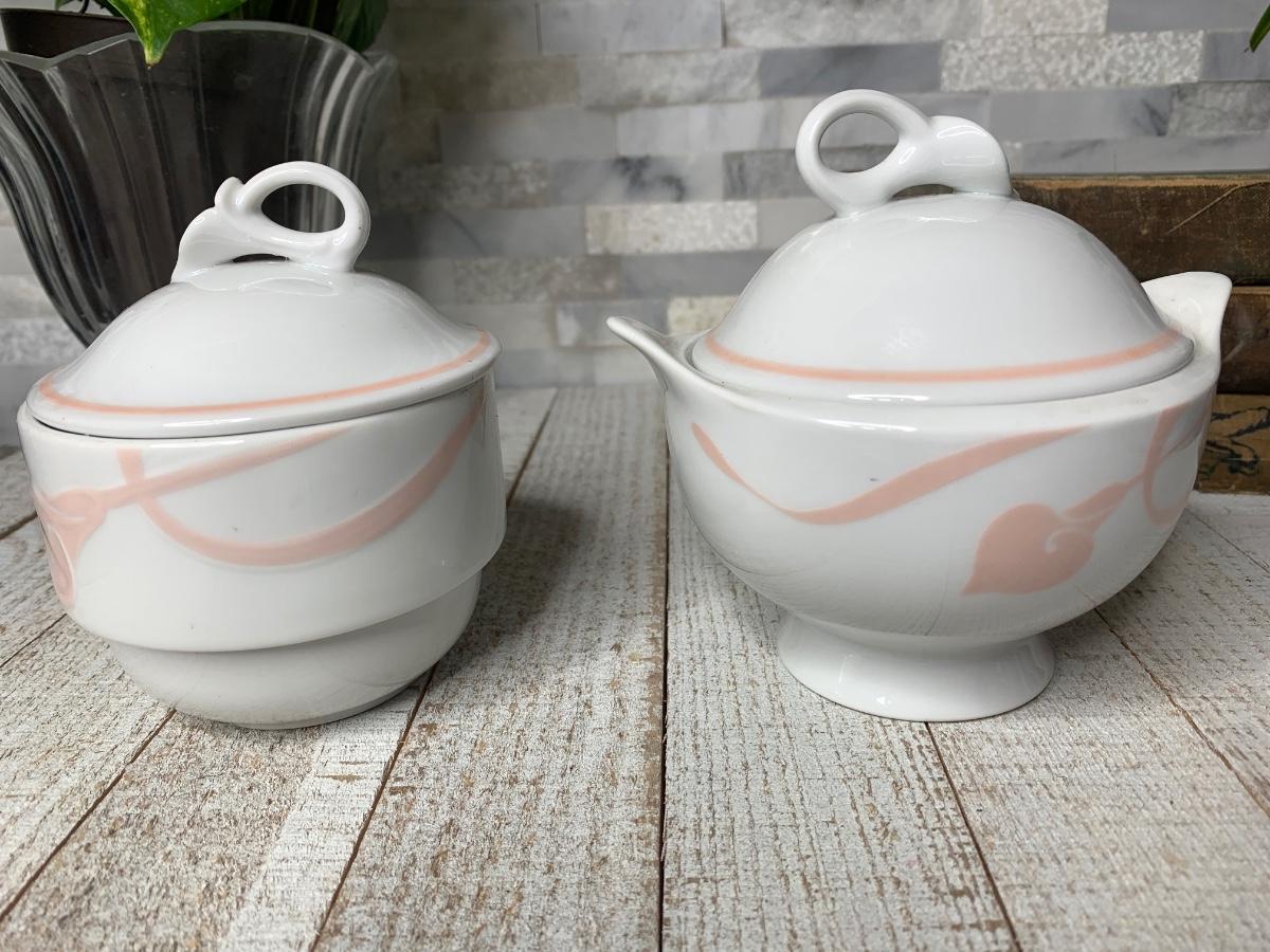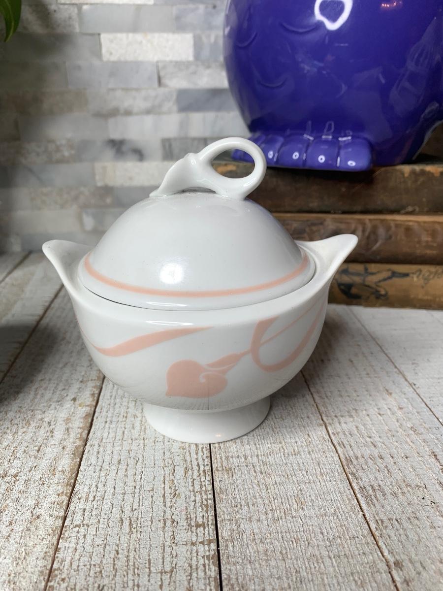 Vintage Mikasa “classic flair peach” Embossed Calla Lilies sugar bowl set