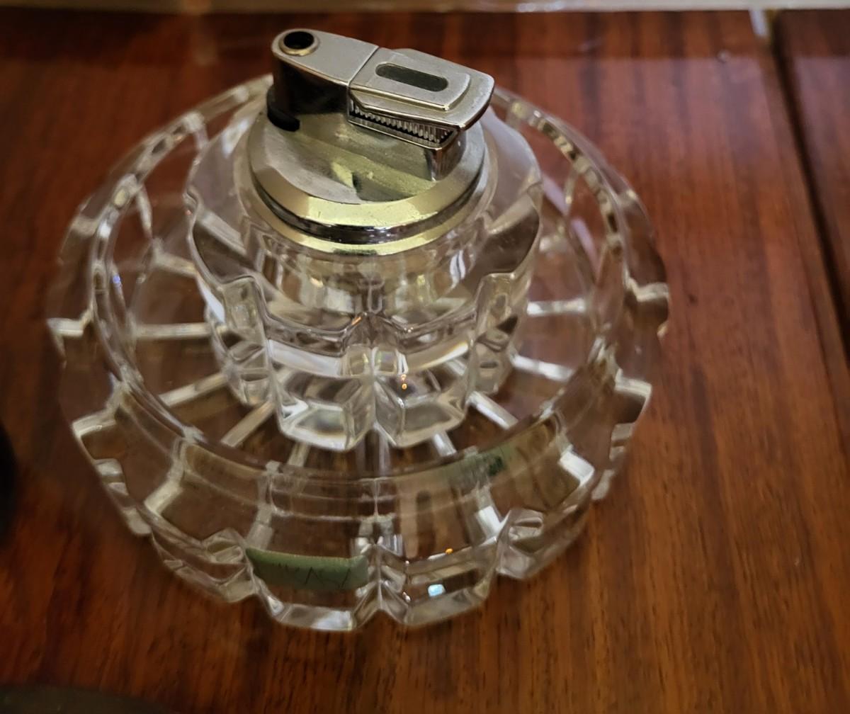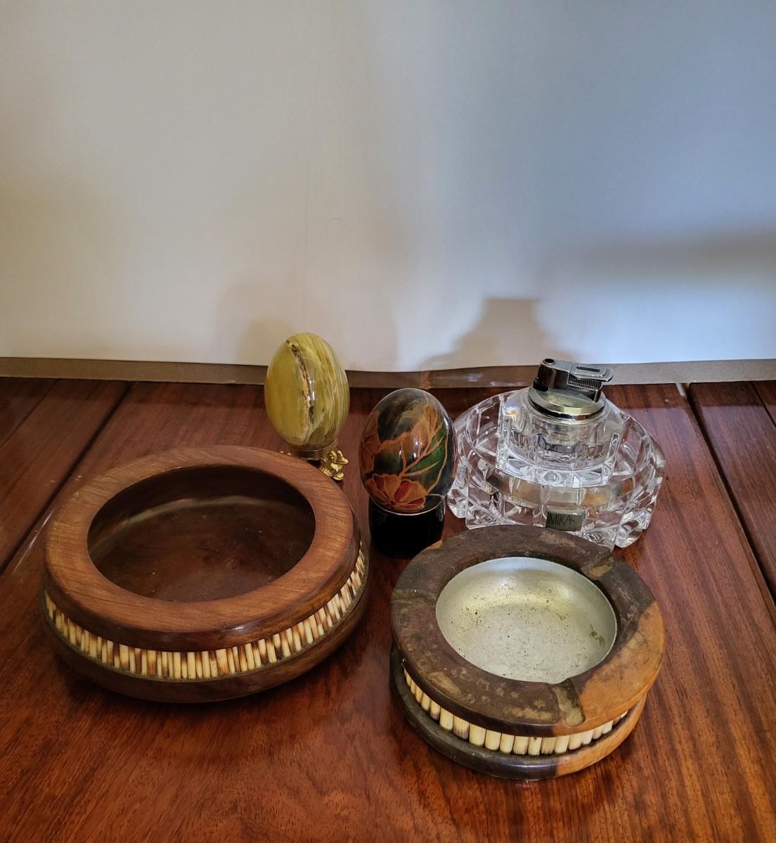 VINTAGE MIKASA CRYSTAL LIGHTER, 2 MARBLE EGGS AND 2 ASHTRAYS