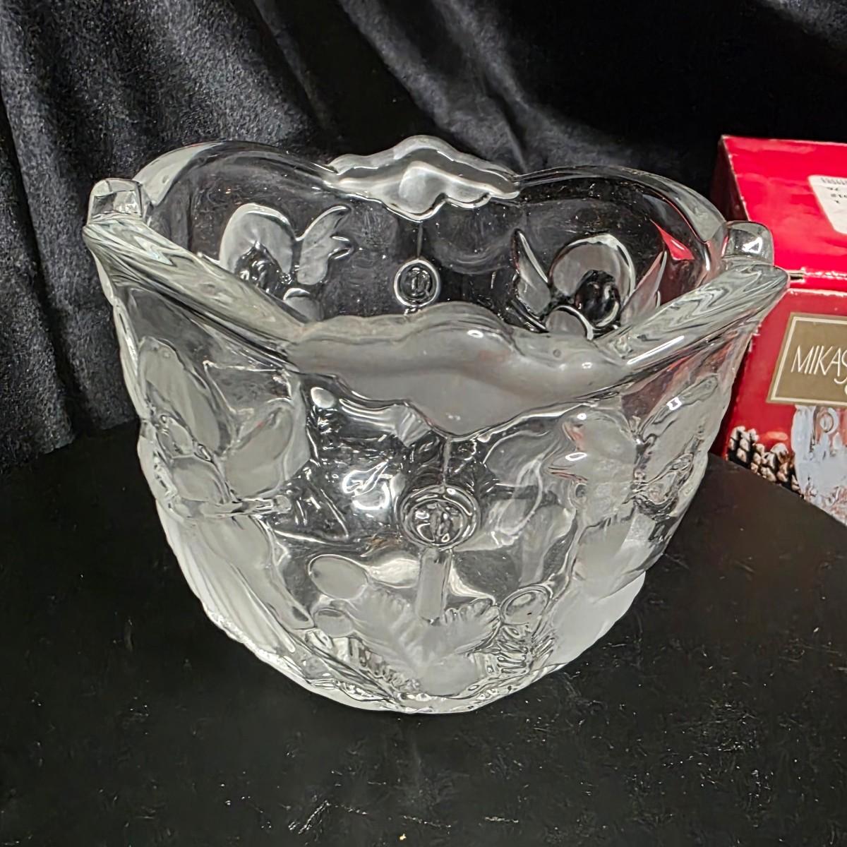 Whether holding a flickering flame to cast ethereal glows across your mantel or serving as a standalone accent amid pine boughs and ornaments, it invites moments of quiet reflection and joy. With its original red box for safekeeping, this holder transforms any space into a sanctuary of light and lore, perfect for those who cherish the magic of the season. For admirers of vintage crystal or seekers of angelic decor, it's a delicate treasure that sparks the heart.