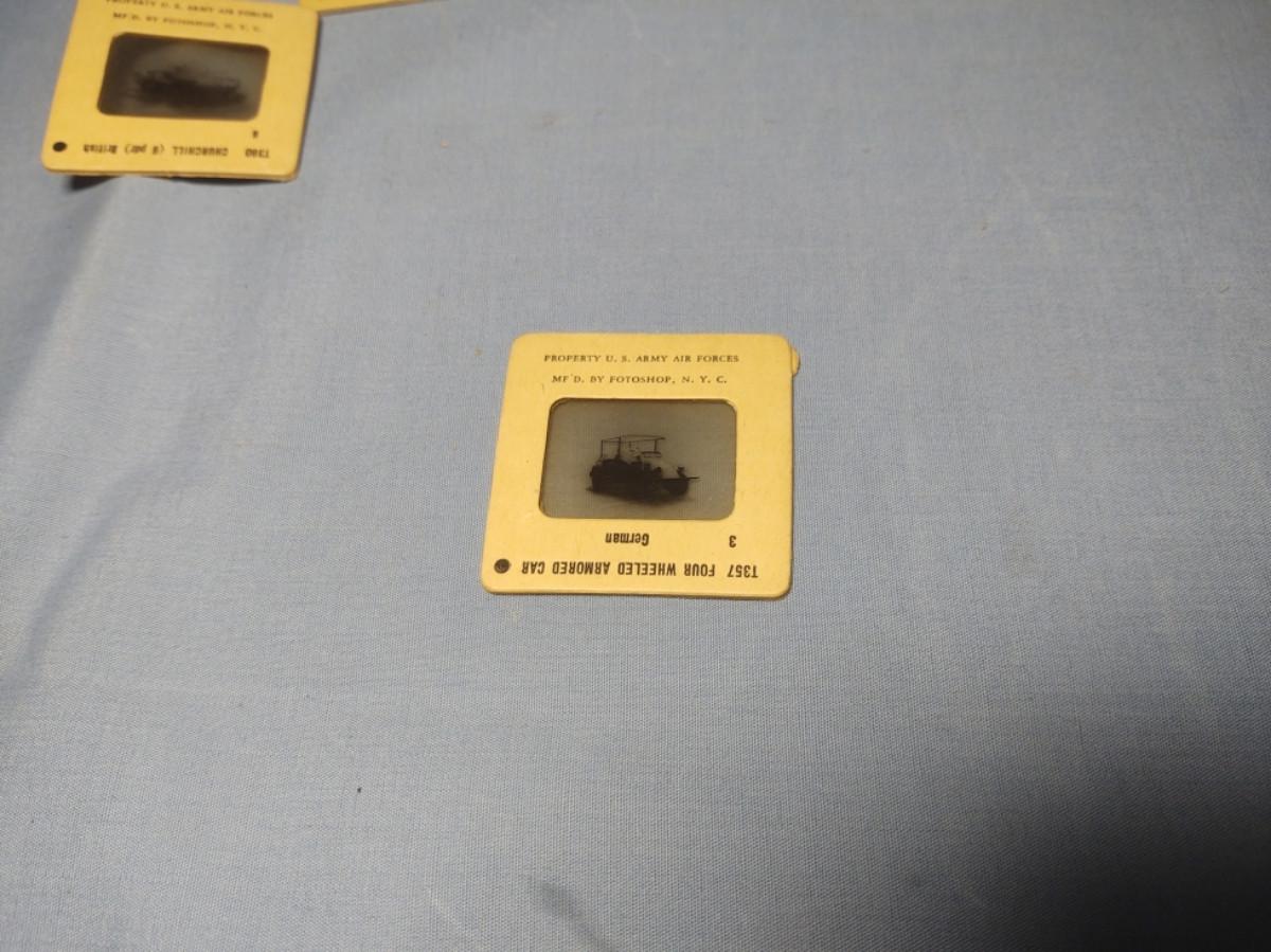 These WWII military slides were used to train troops to identify enemy and ally planes, ,tanks, and other equipment. Don't miss out on this collection!