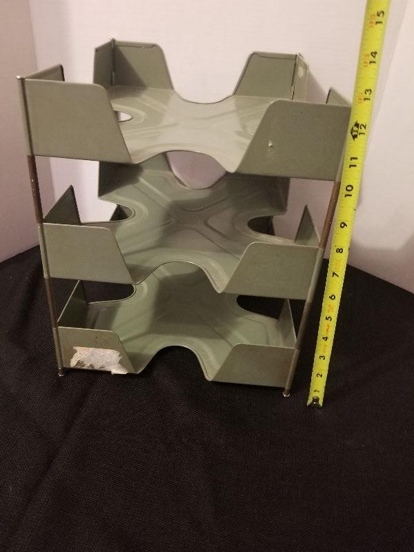 Vintage Military Style Metal 3 Tier File Tray Military Green - #58-A