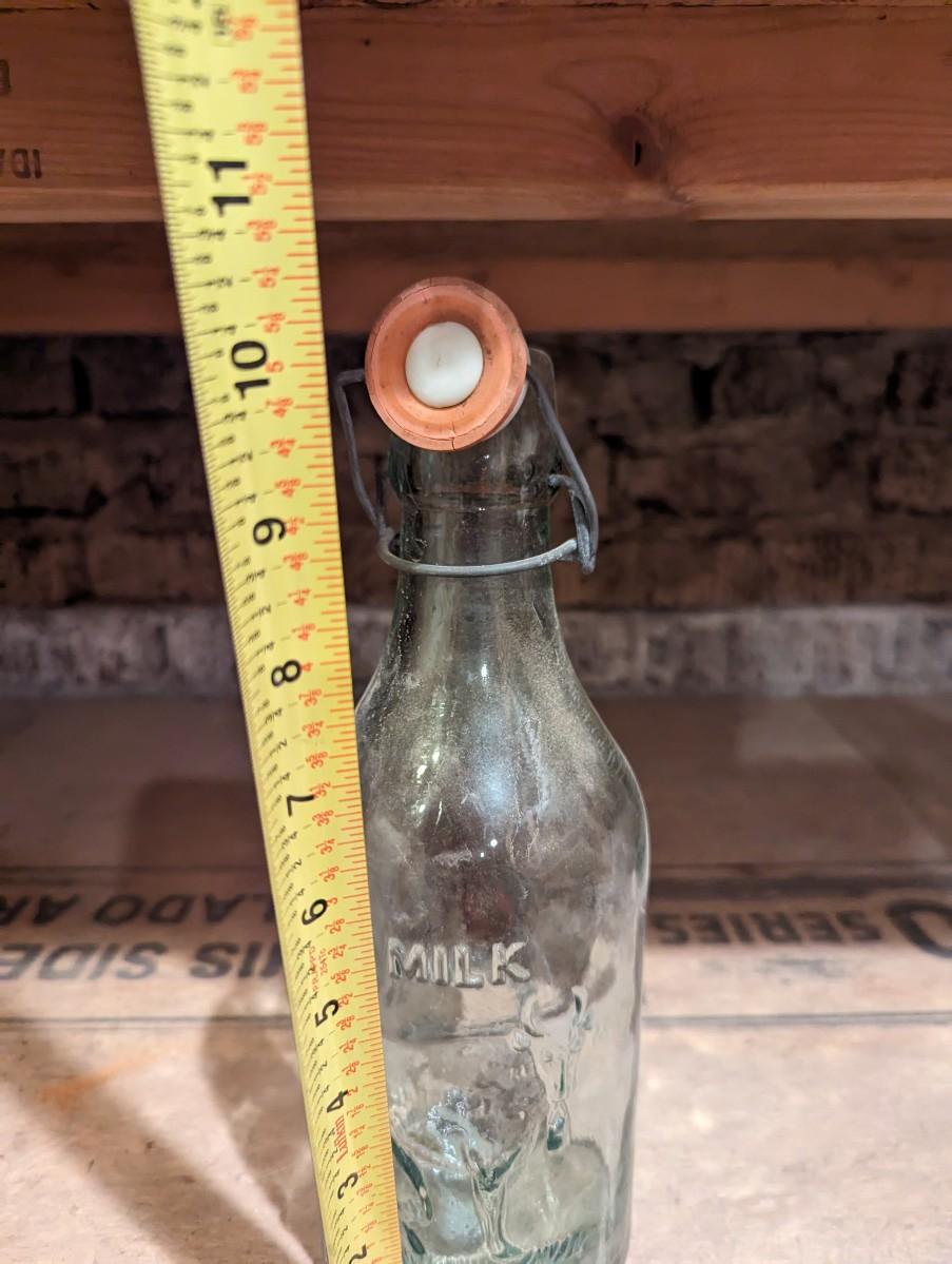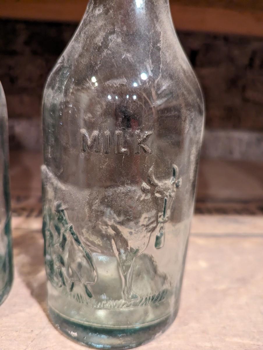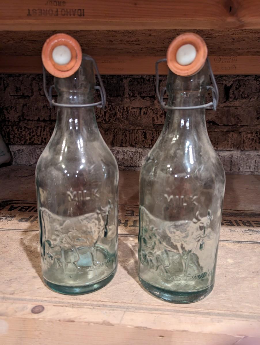 Pair of Vintage Embossed Milk Bottles with Bale Tops