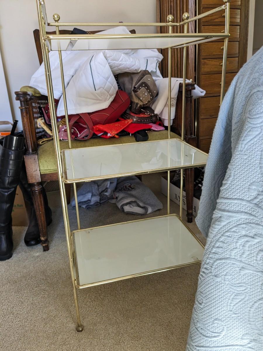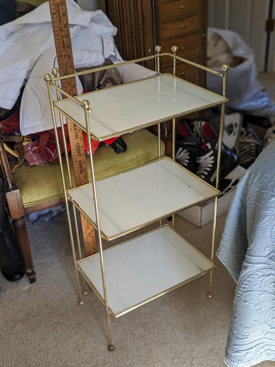 Vintage Milk Glass 3 Shelf Brass Stand