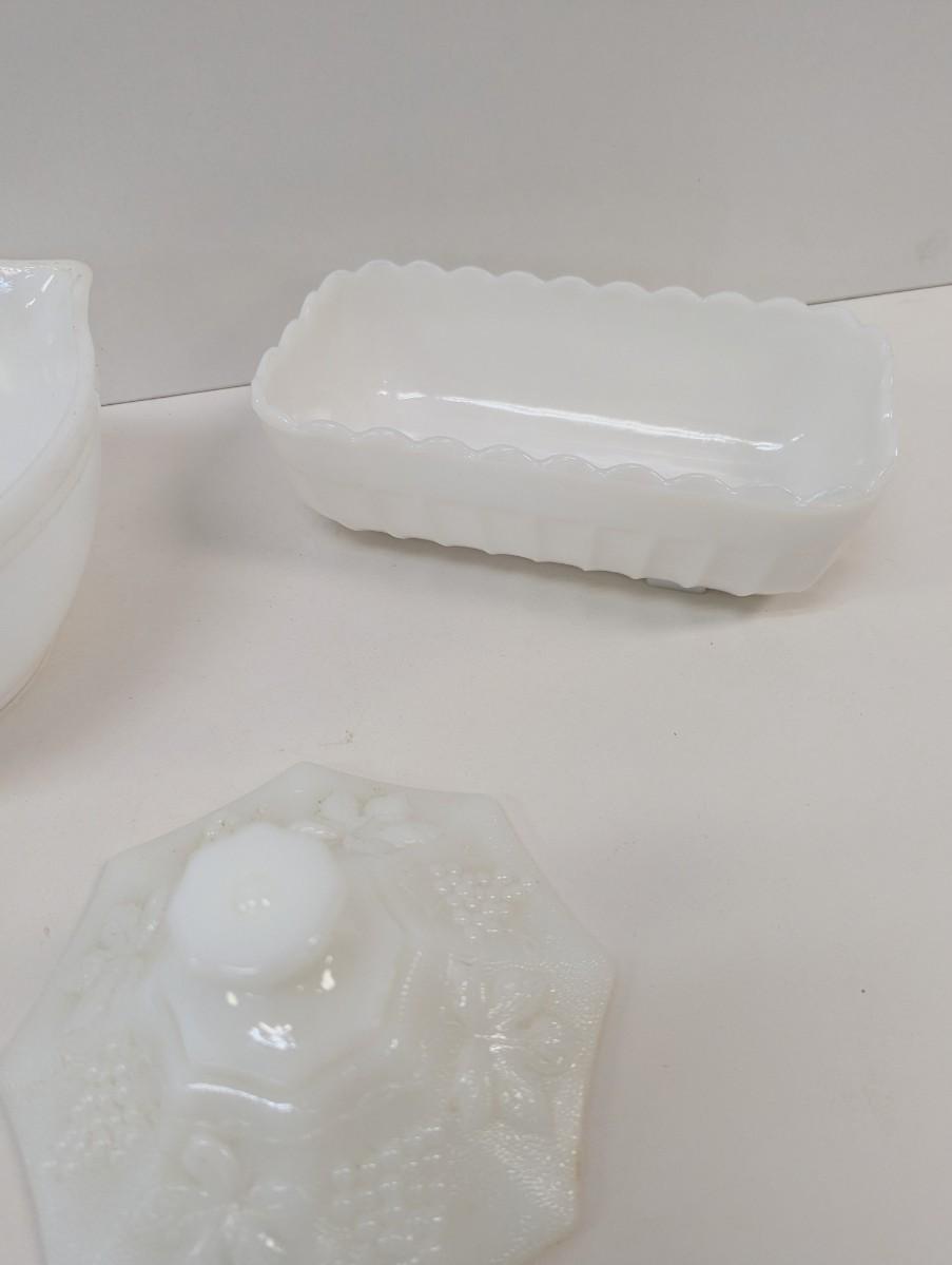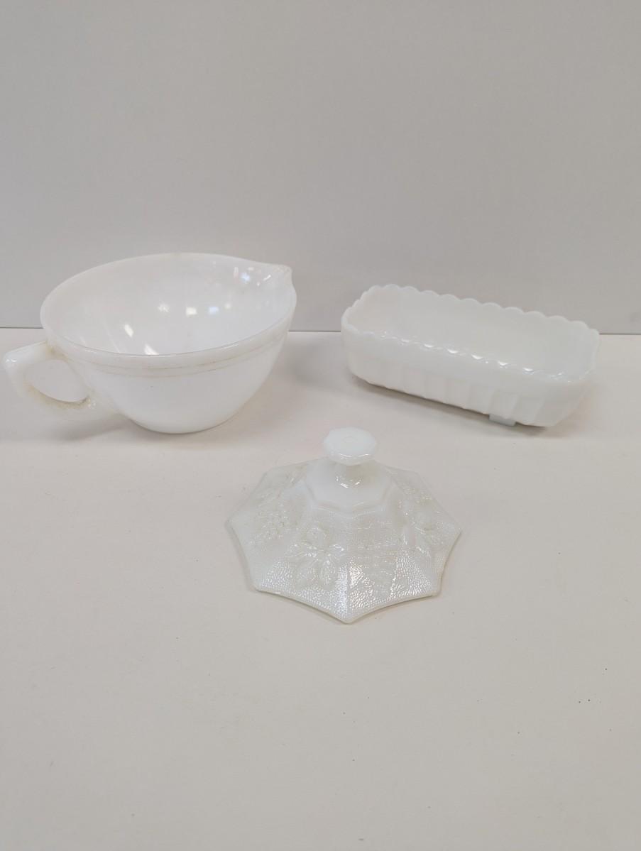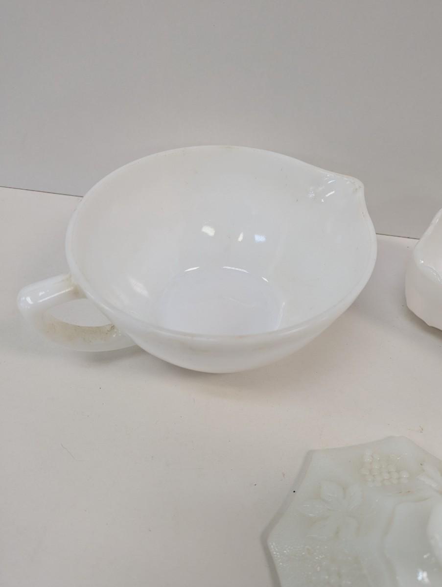 Vintage Milk Glass Batter Mixing Bowl With Spout & Cake Dish