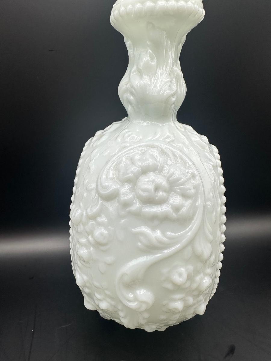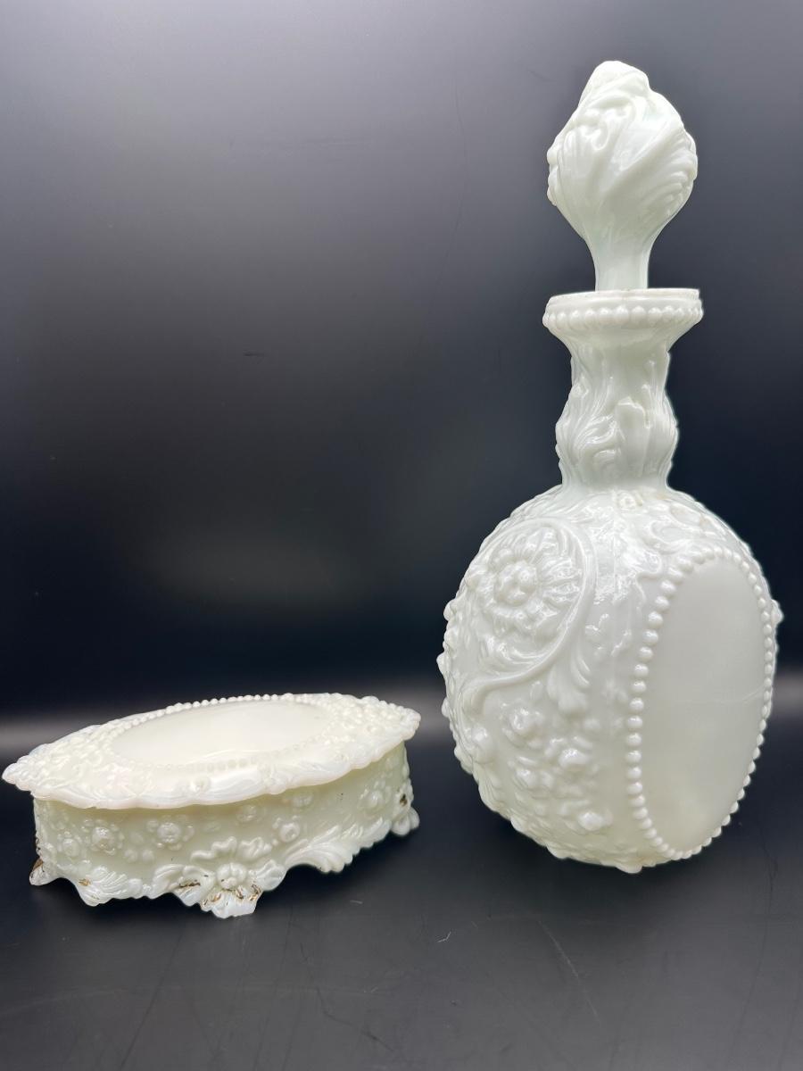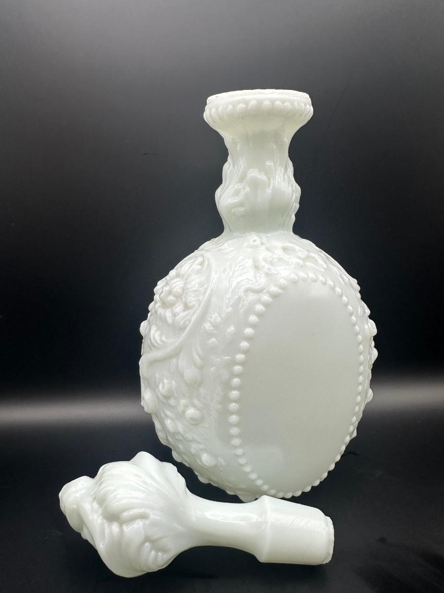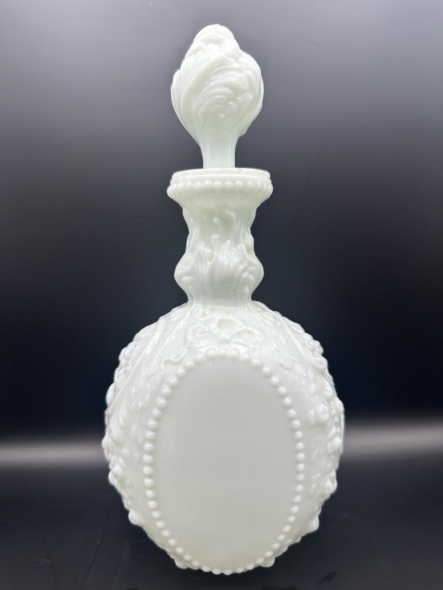 Vintage Milk Glass Decanter & Covered Jar