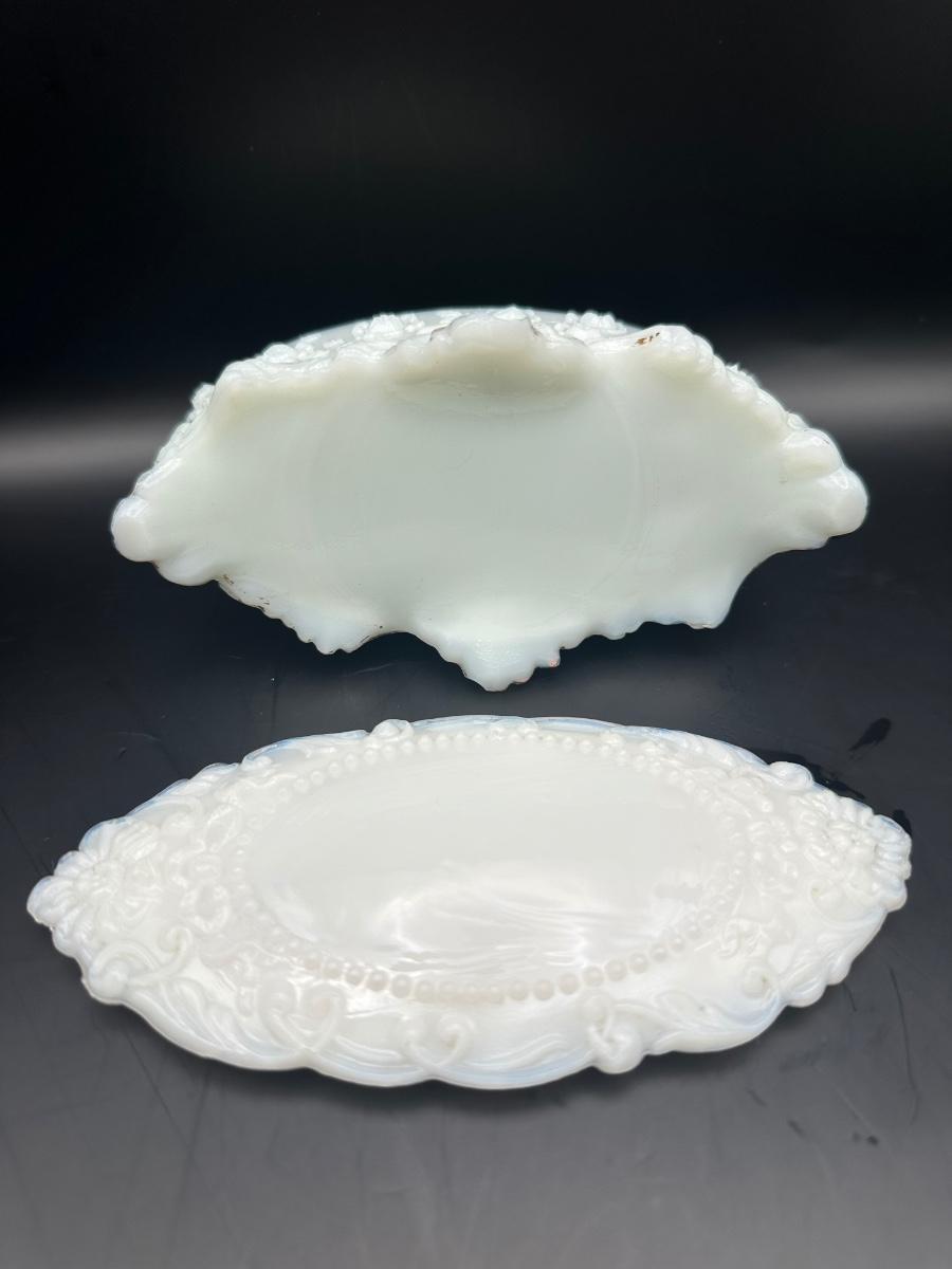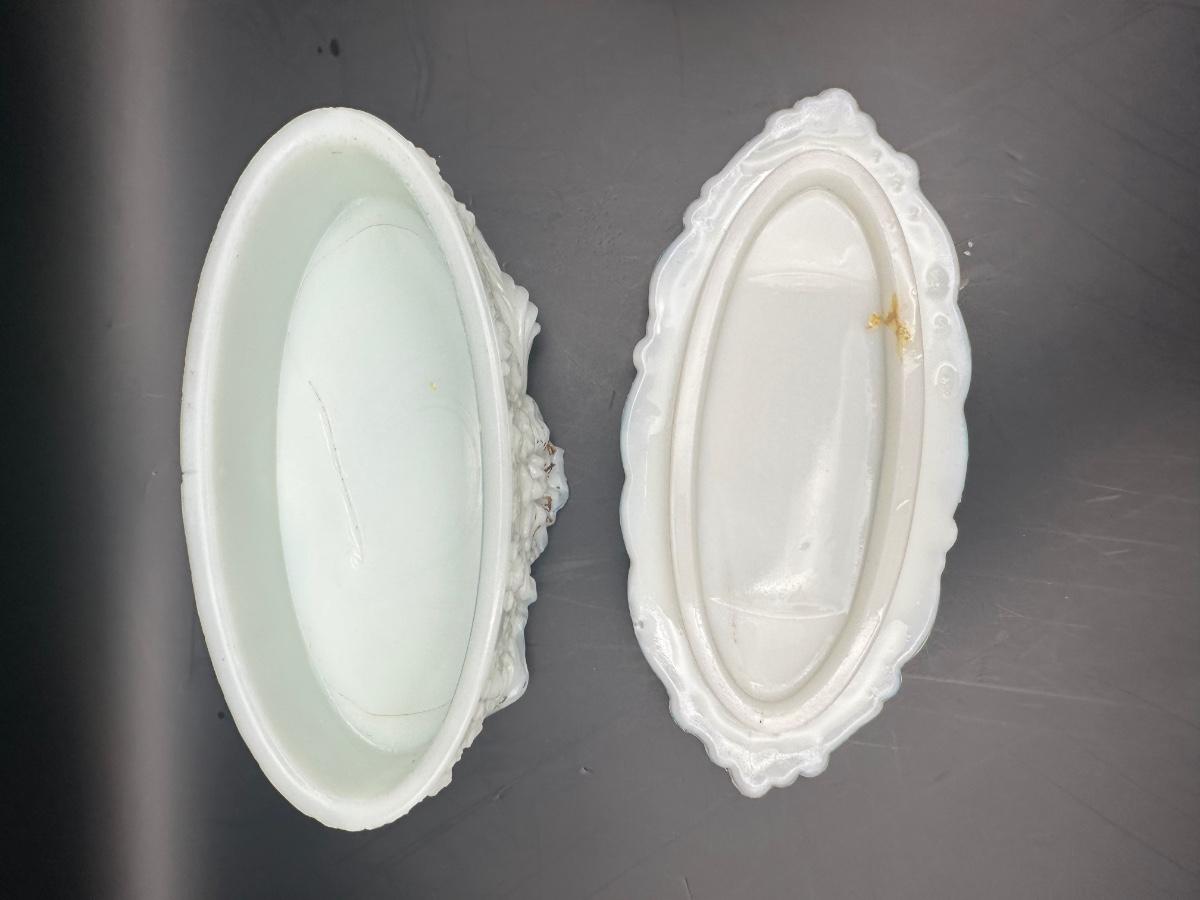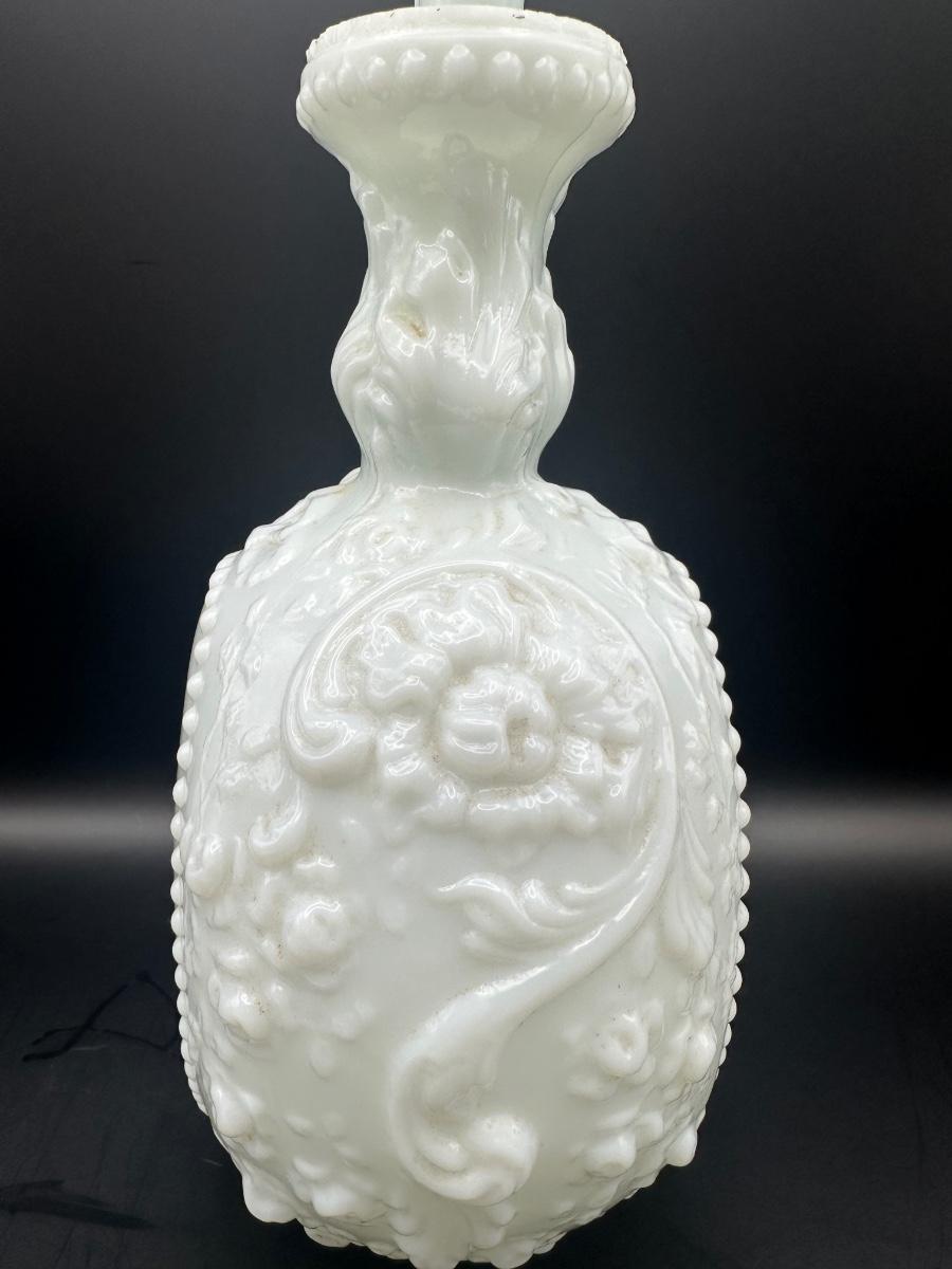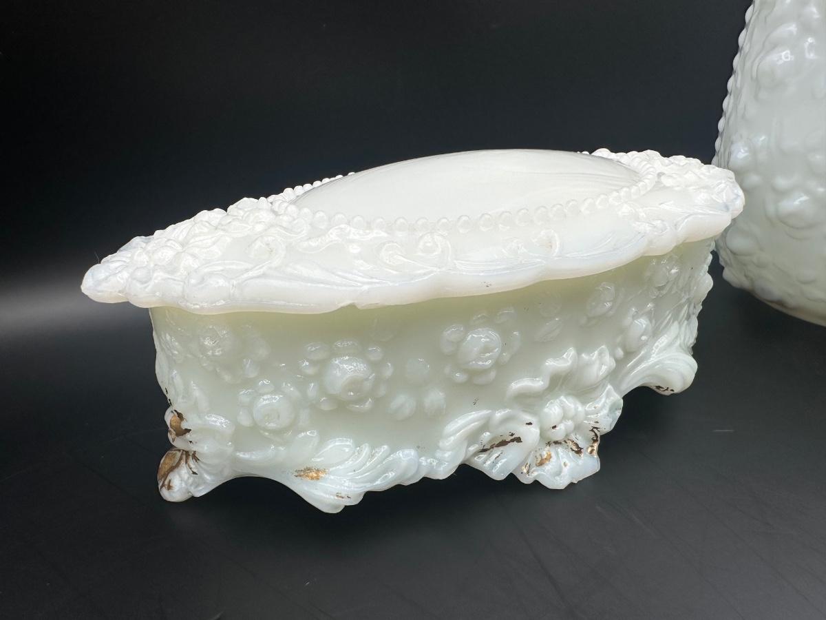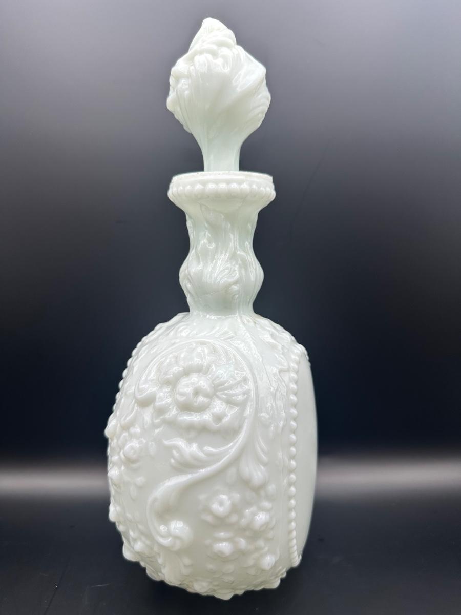Vintage Milk Glass Decanter & Covered Jar