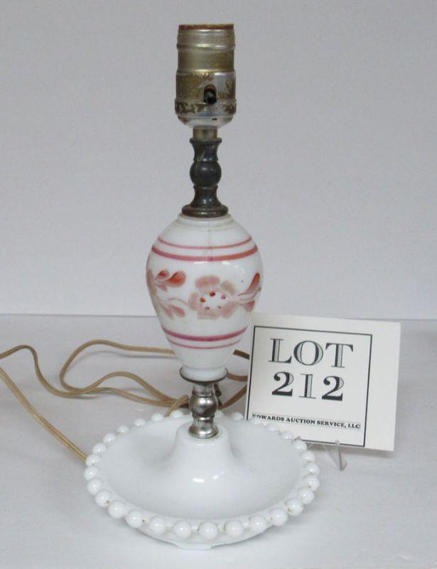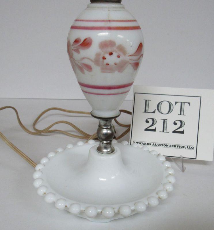 Vintage Milk Glass Dresser Lamp With Pink Floral Decor