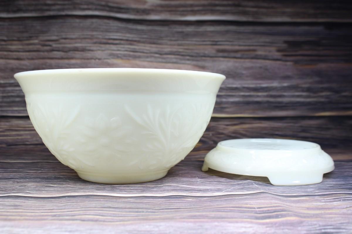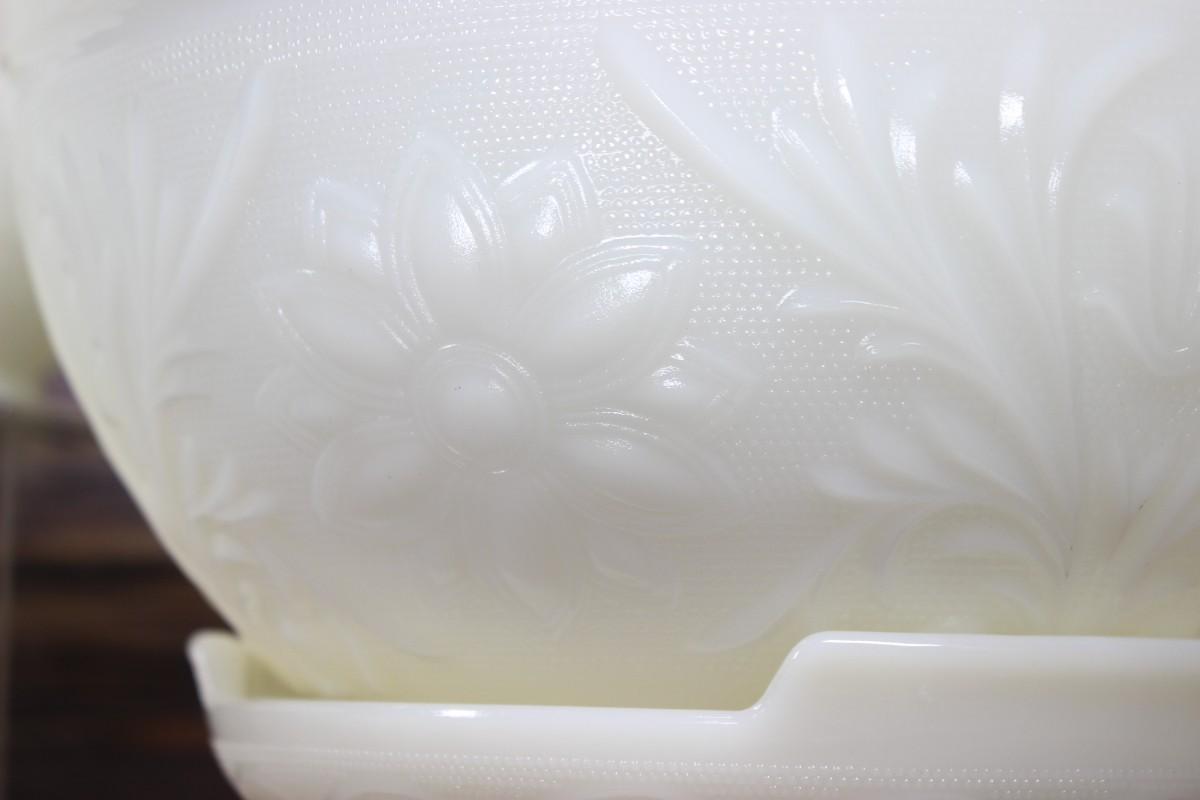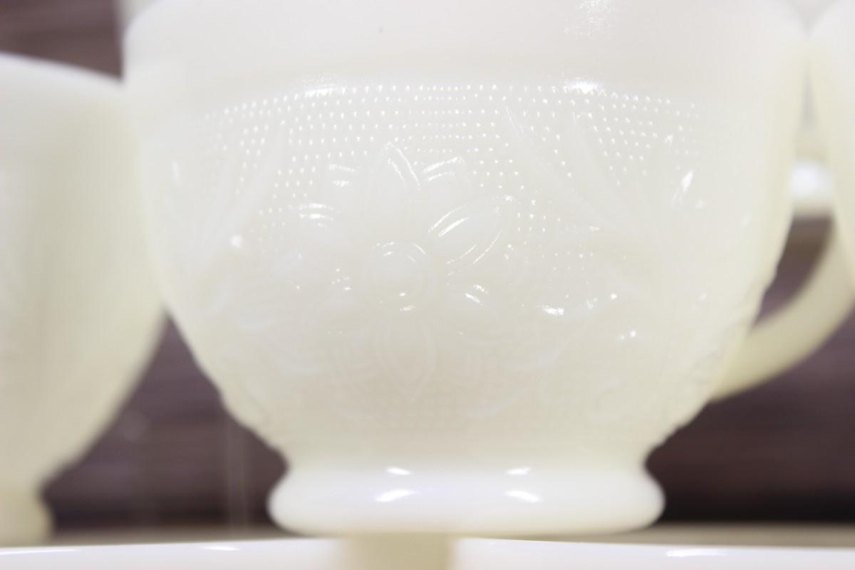 Vintage Milk Glass Flower Design Punch Bowl and Cups Set