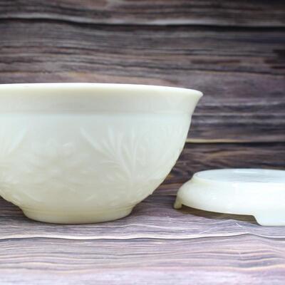 Vintage Milk Glass Flower Design Punch Bowl and Cups Set