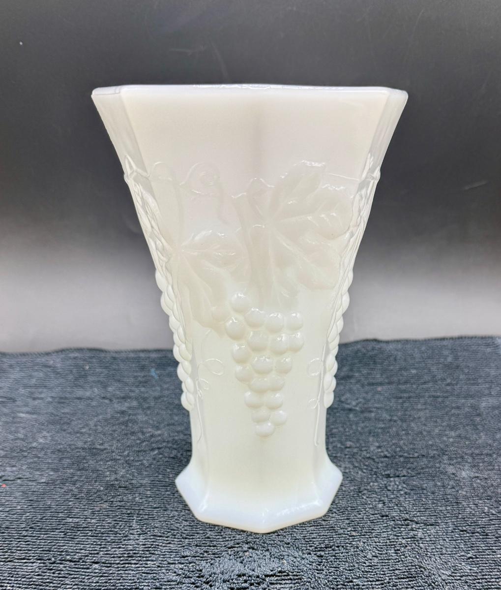 Vintage Westmoreland Milk Glass Vase - Grapes