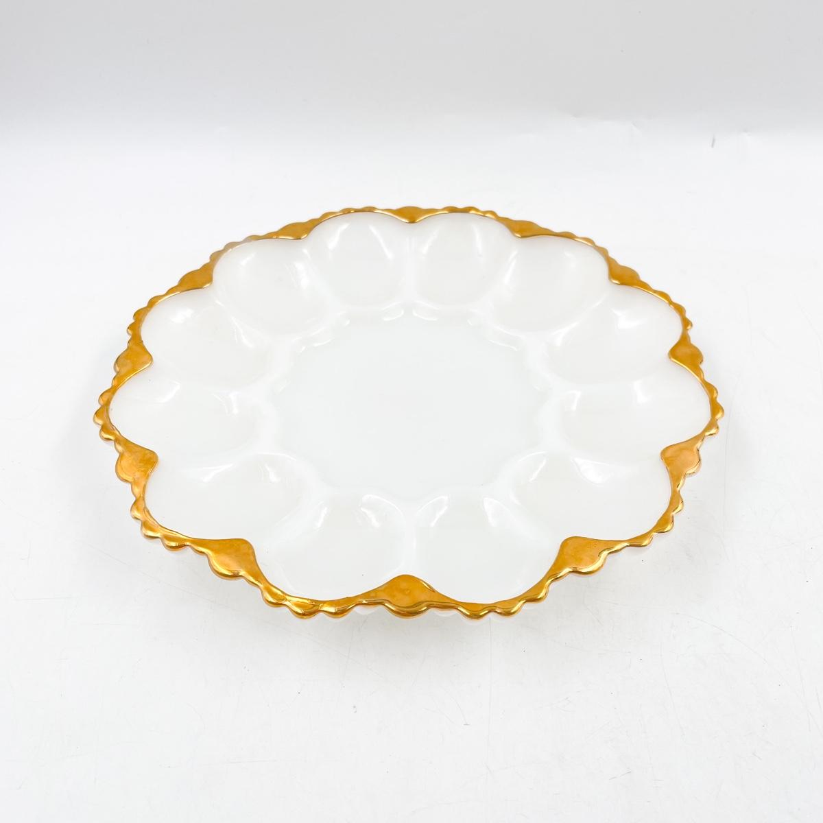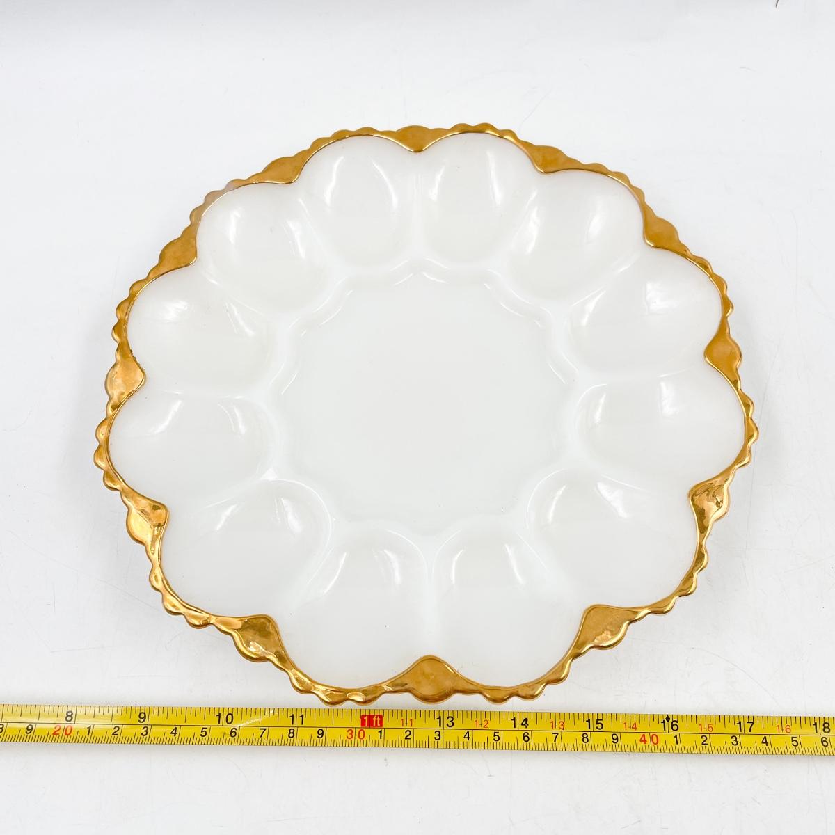 VINTAGE MILK GLASS & GOLD DEVILED EGG DISH