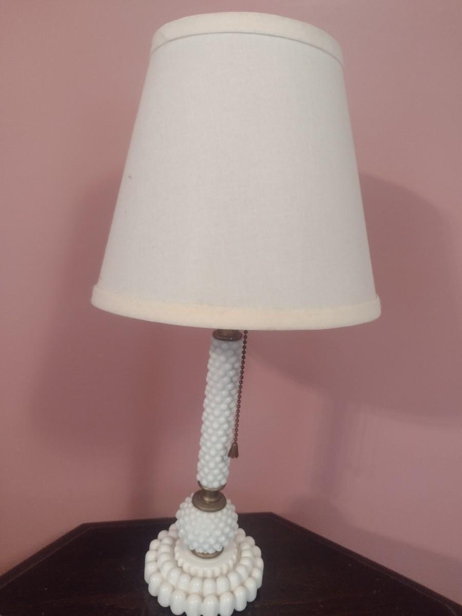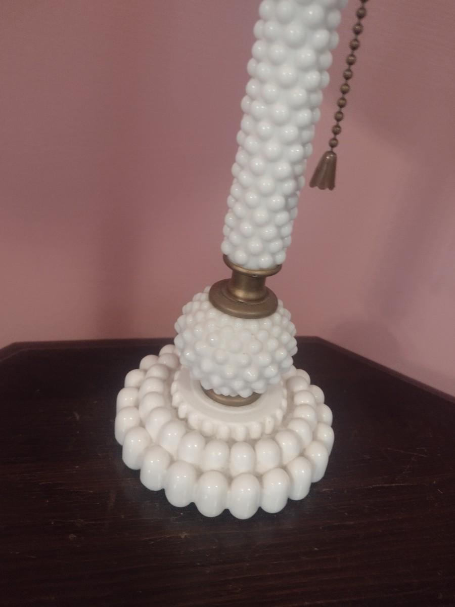 Vintage Milk Glass Hobnail Candlestick Design Table Lamp