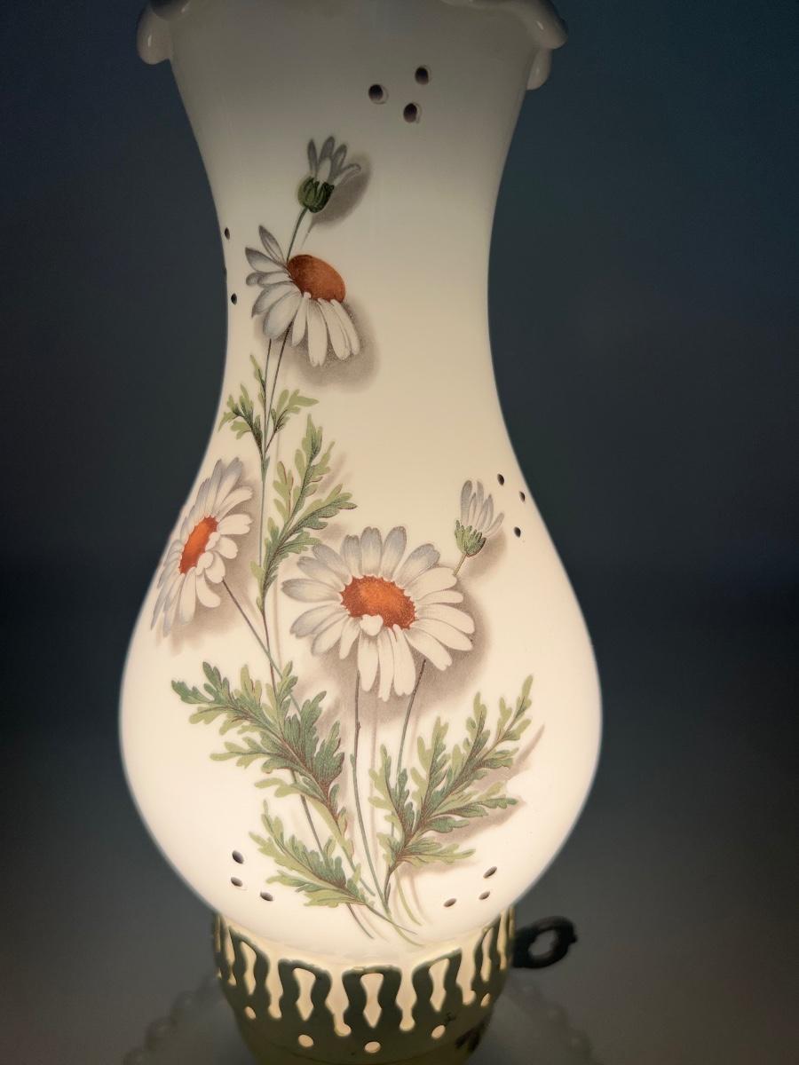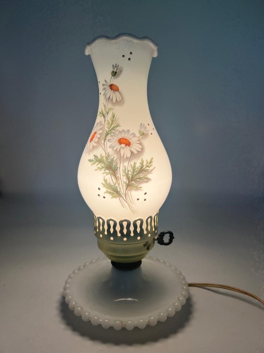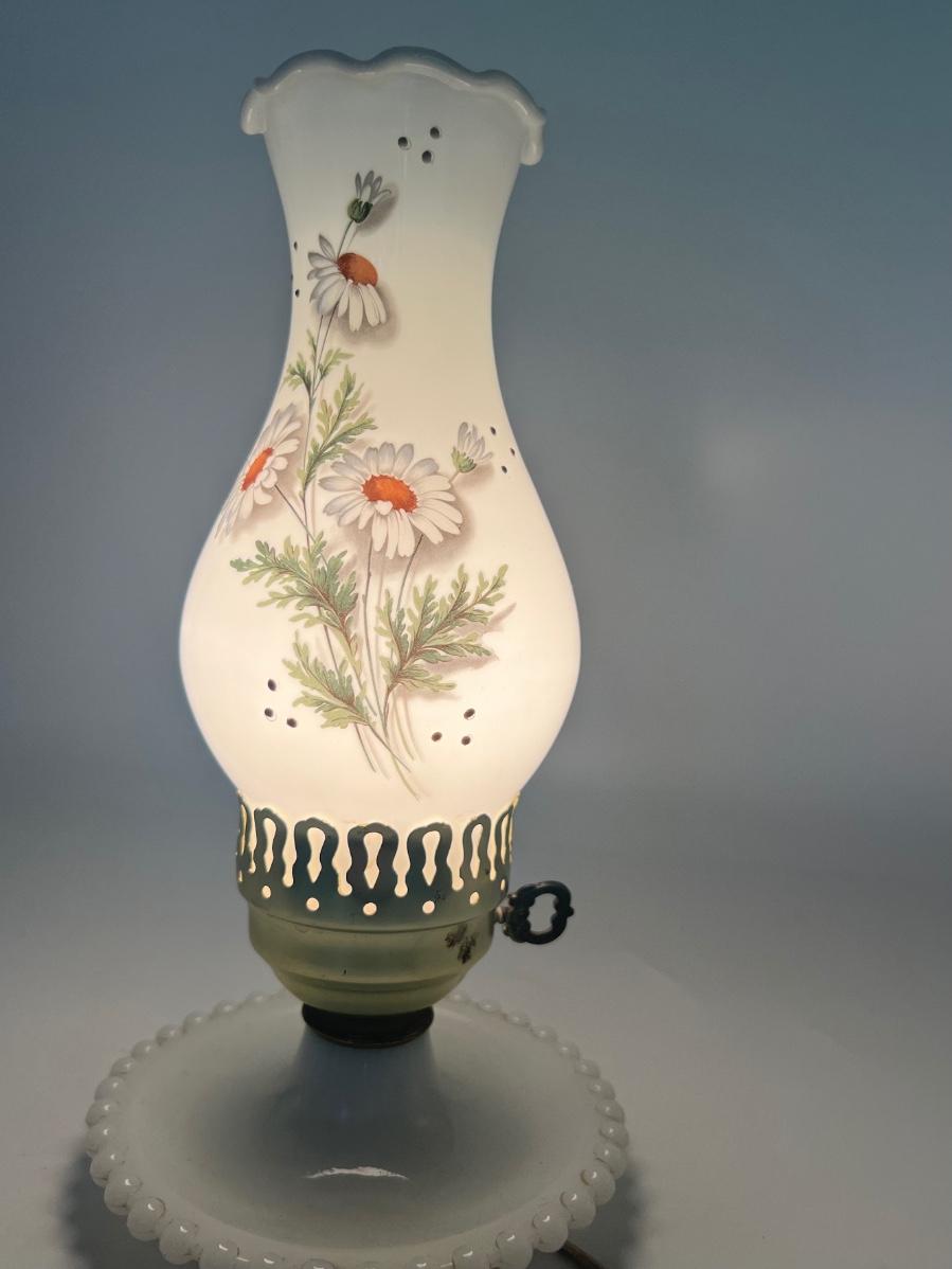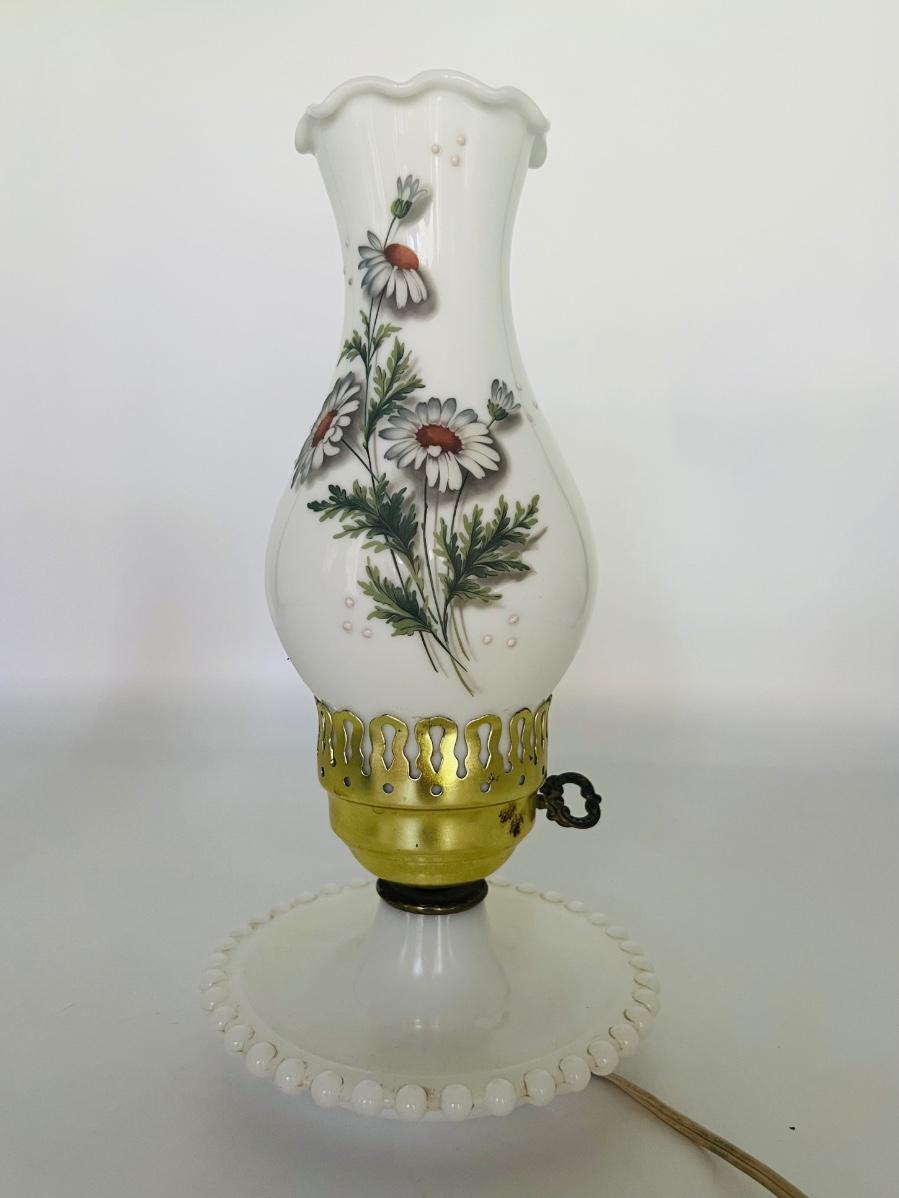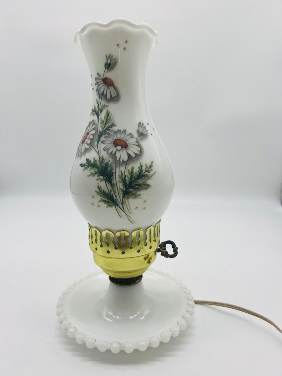 Vintage Milk Glass Hurricane Lamp Measures 12 inches tall.