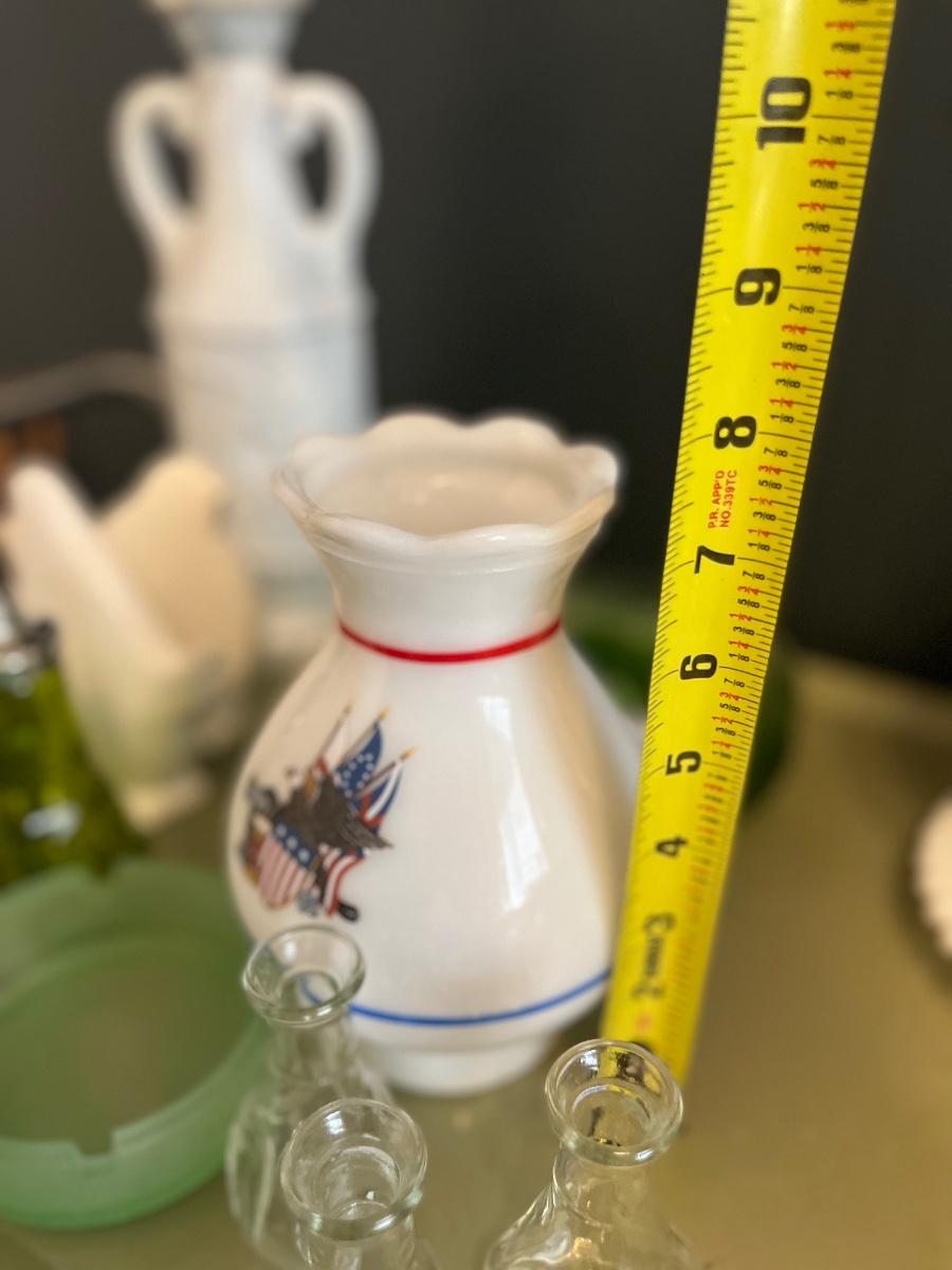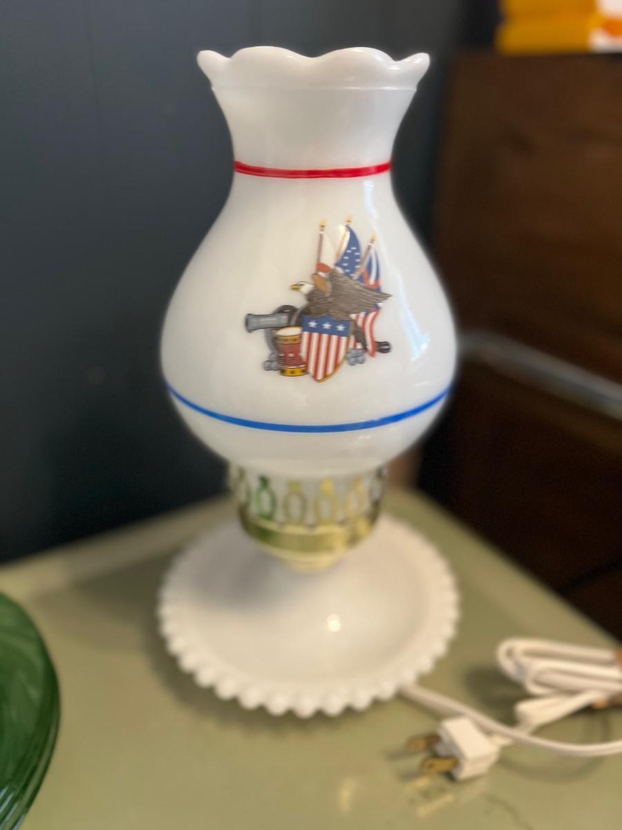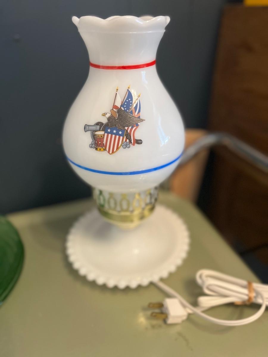 Vintage milk glass lamp with eagle.