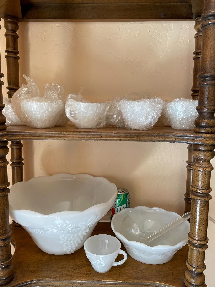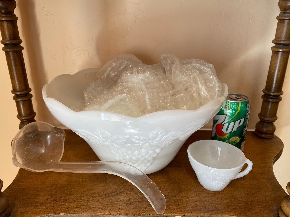 #228 Vintage Milk Glass Punch Bowl Set 2 Bowls & 11 Cups