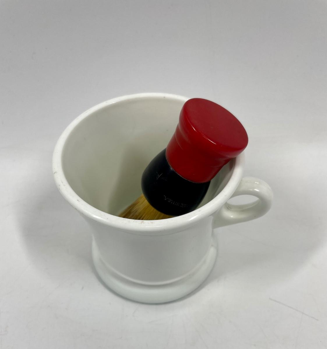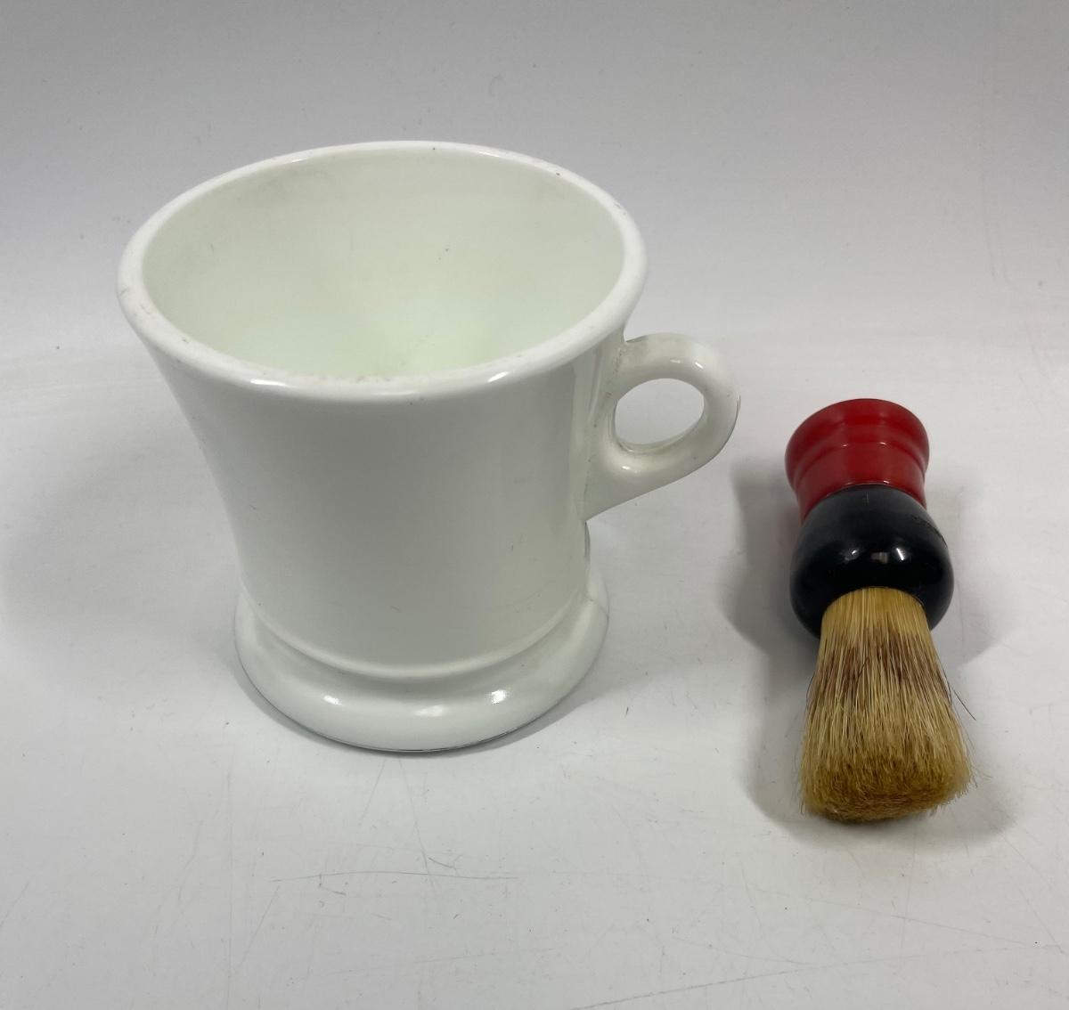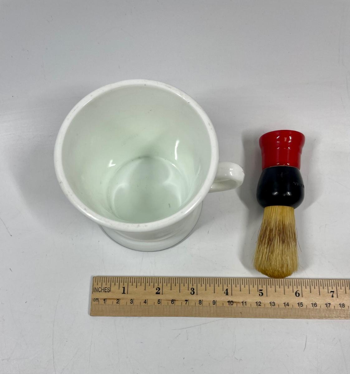 Vintage Milk Glass Shaving Cup and Brush. Small chip in the cup, see photos.