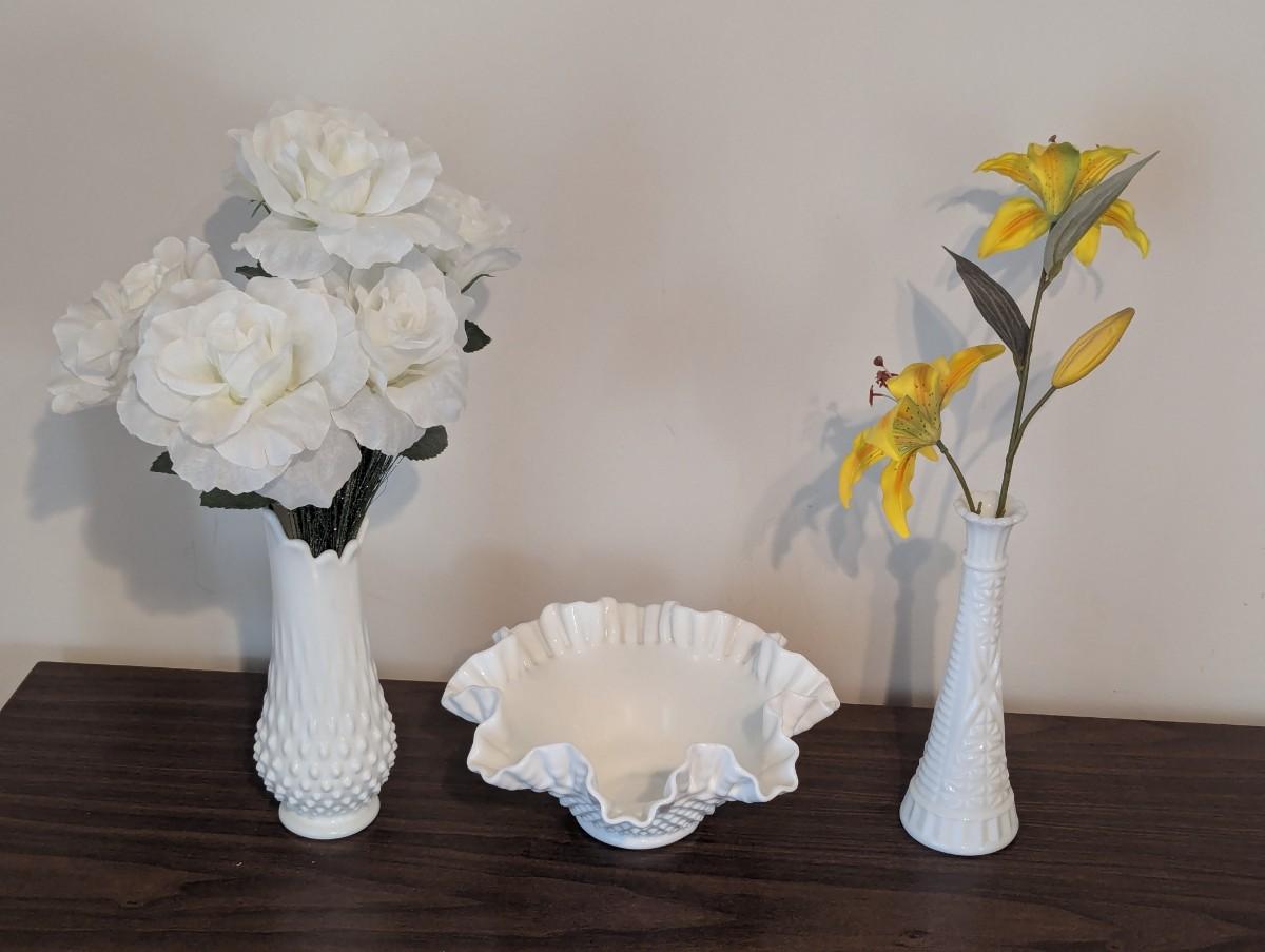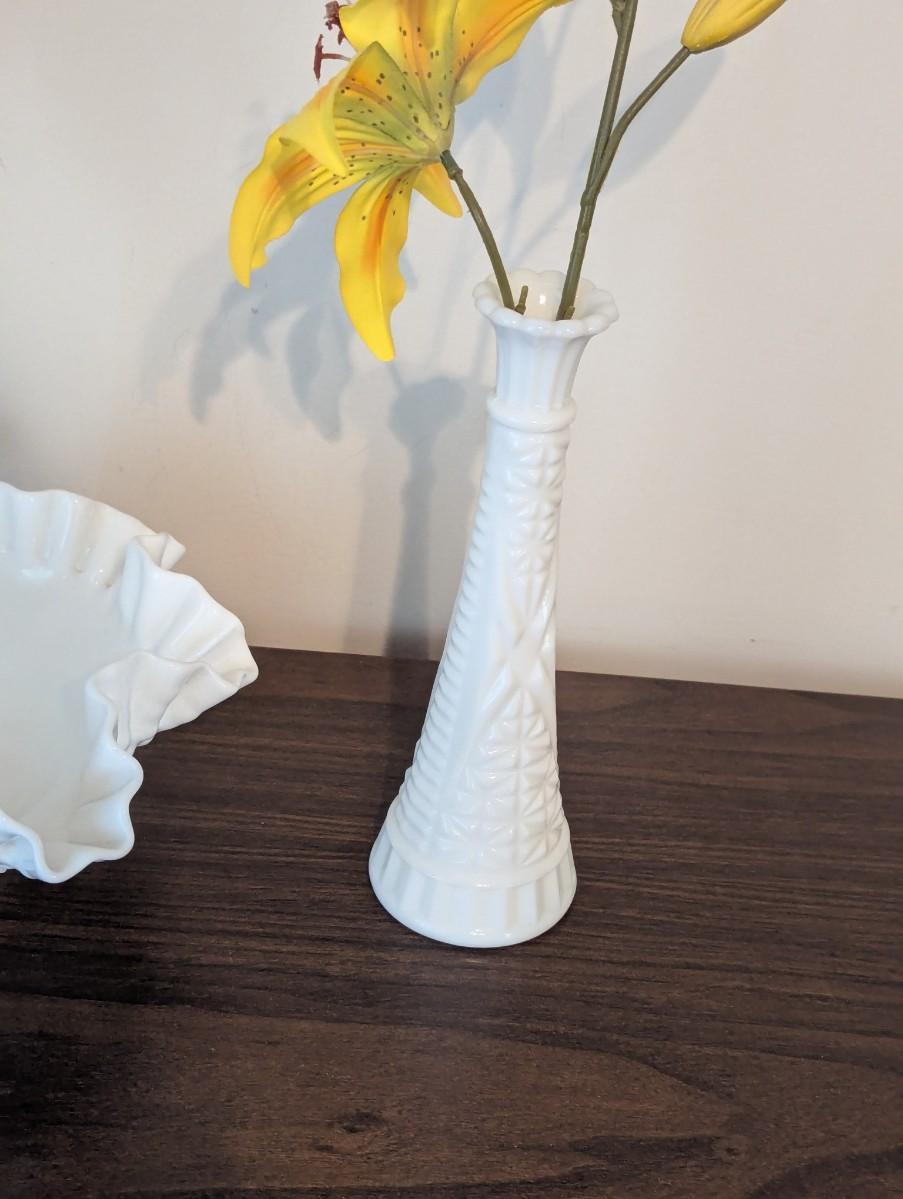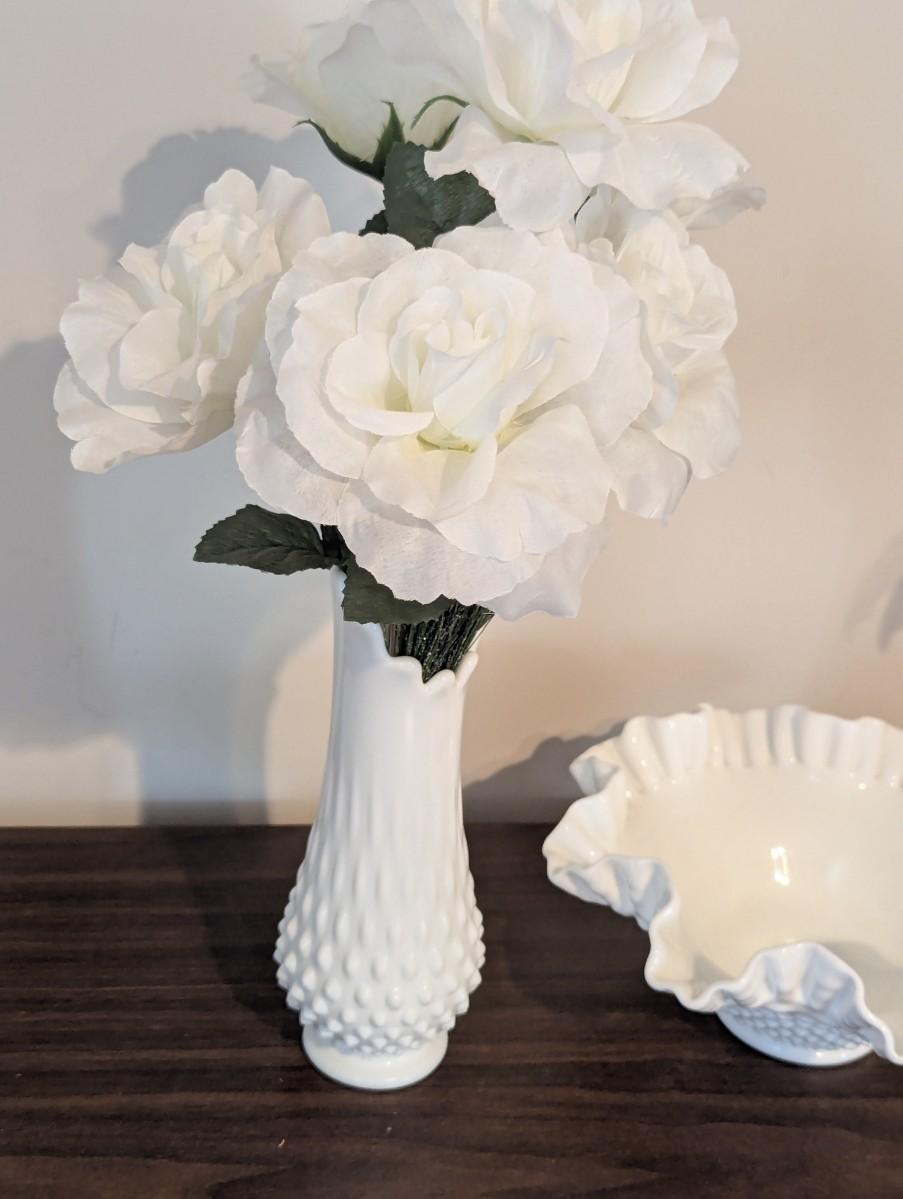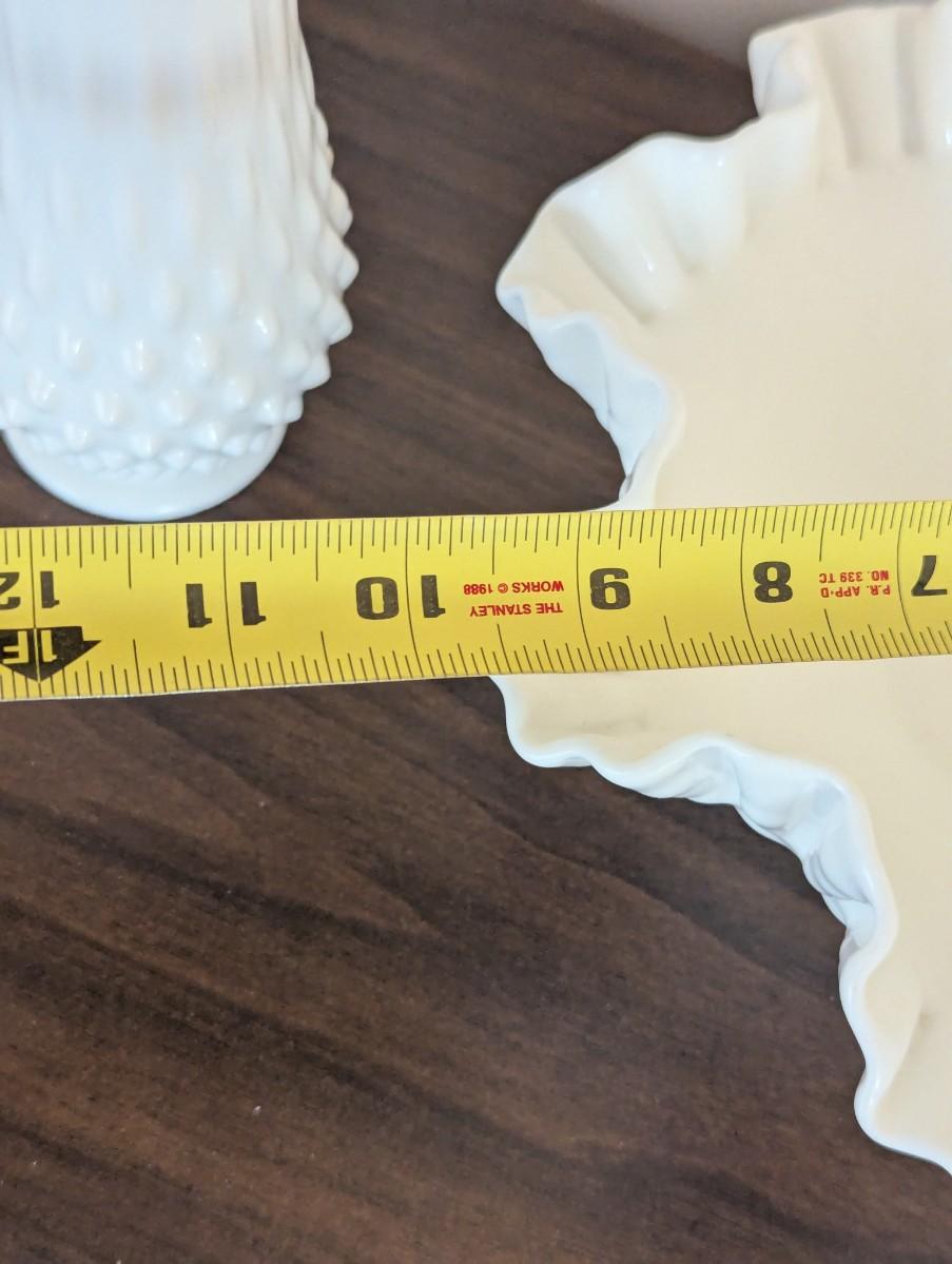 Vintage Milk Glass Vase Fenton Hobnail Ruffled Edge Bowl