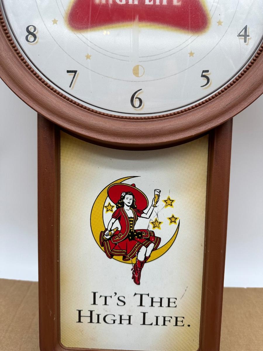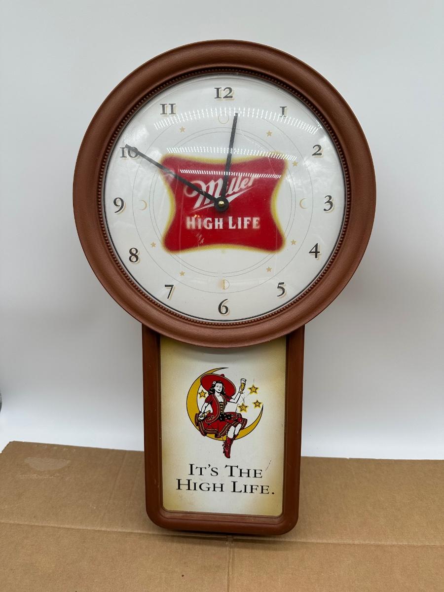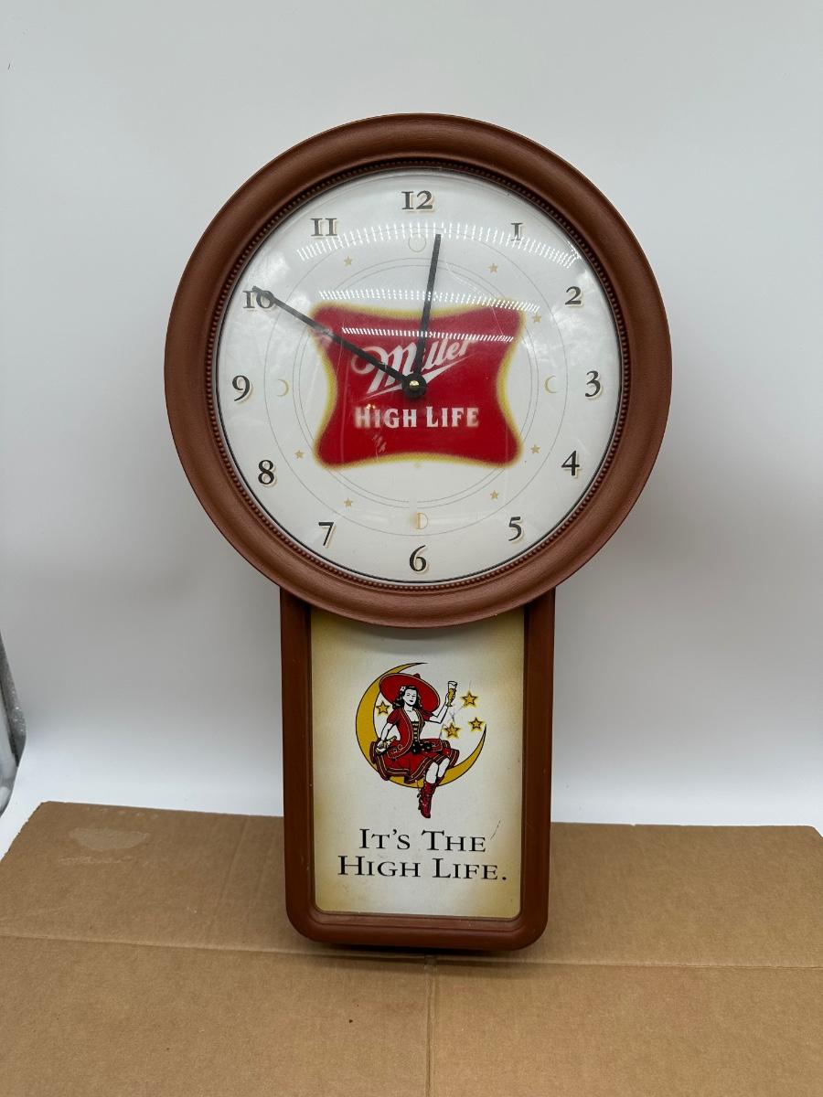 Vintage Miller High Life “It’s the High Life” Advertising Wall Clock – Pendulum Style