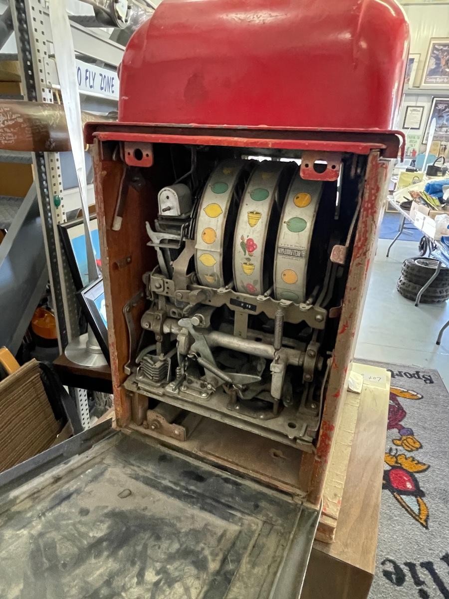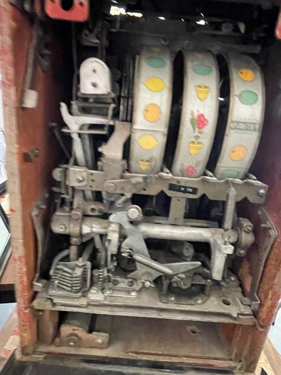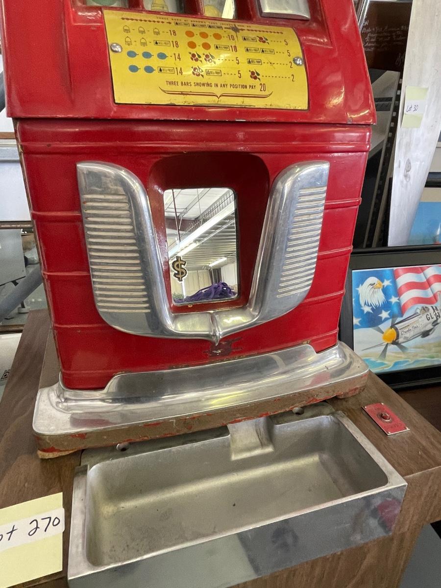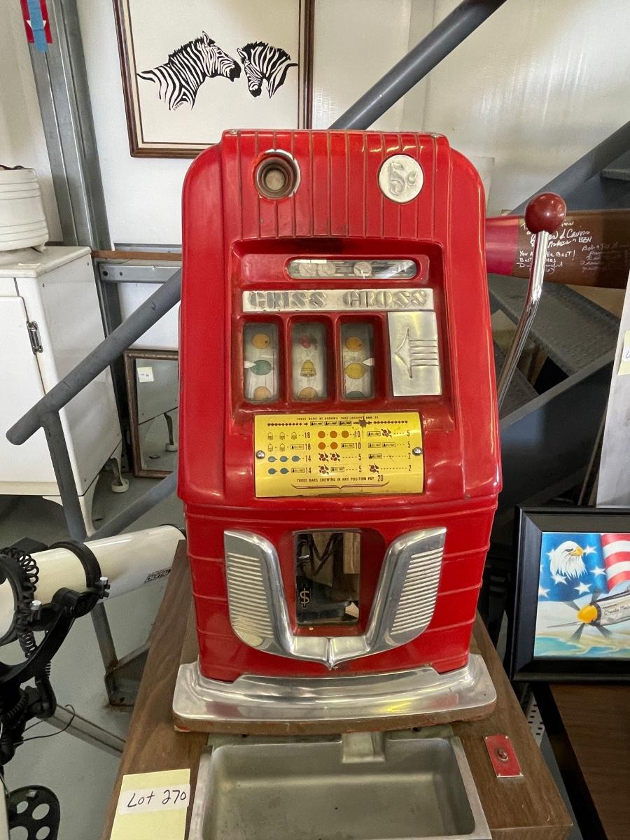 Vintage Mills Criss Cross nickel Slot Machine on Base
