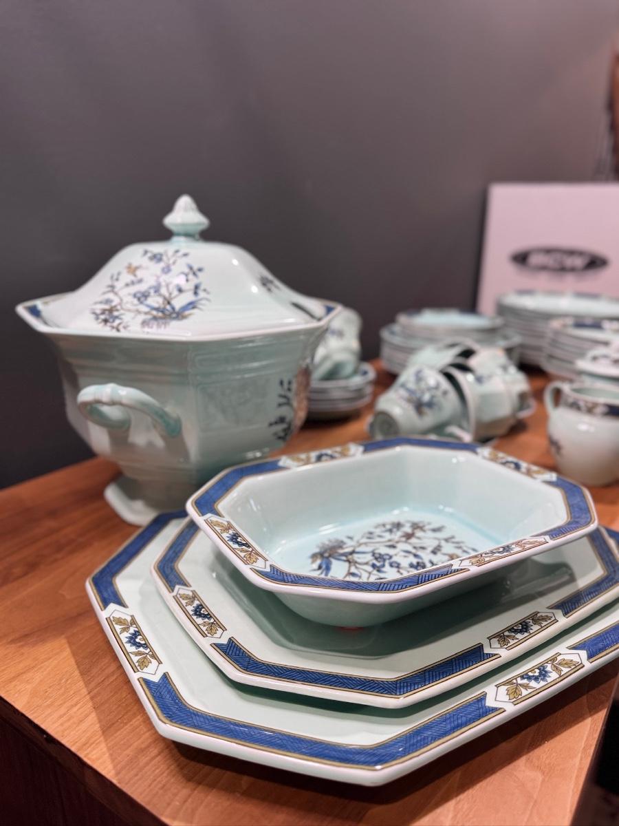This is a large, coordinated dinner service that will stand out on any table — or make a wonderful collector’s addition.