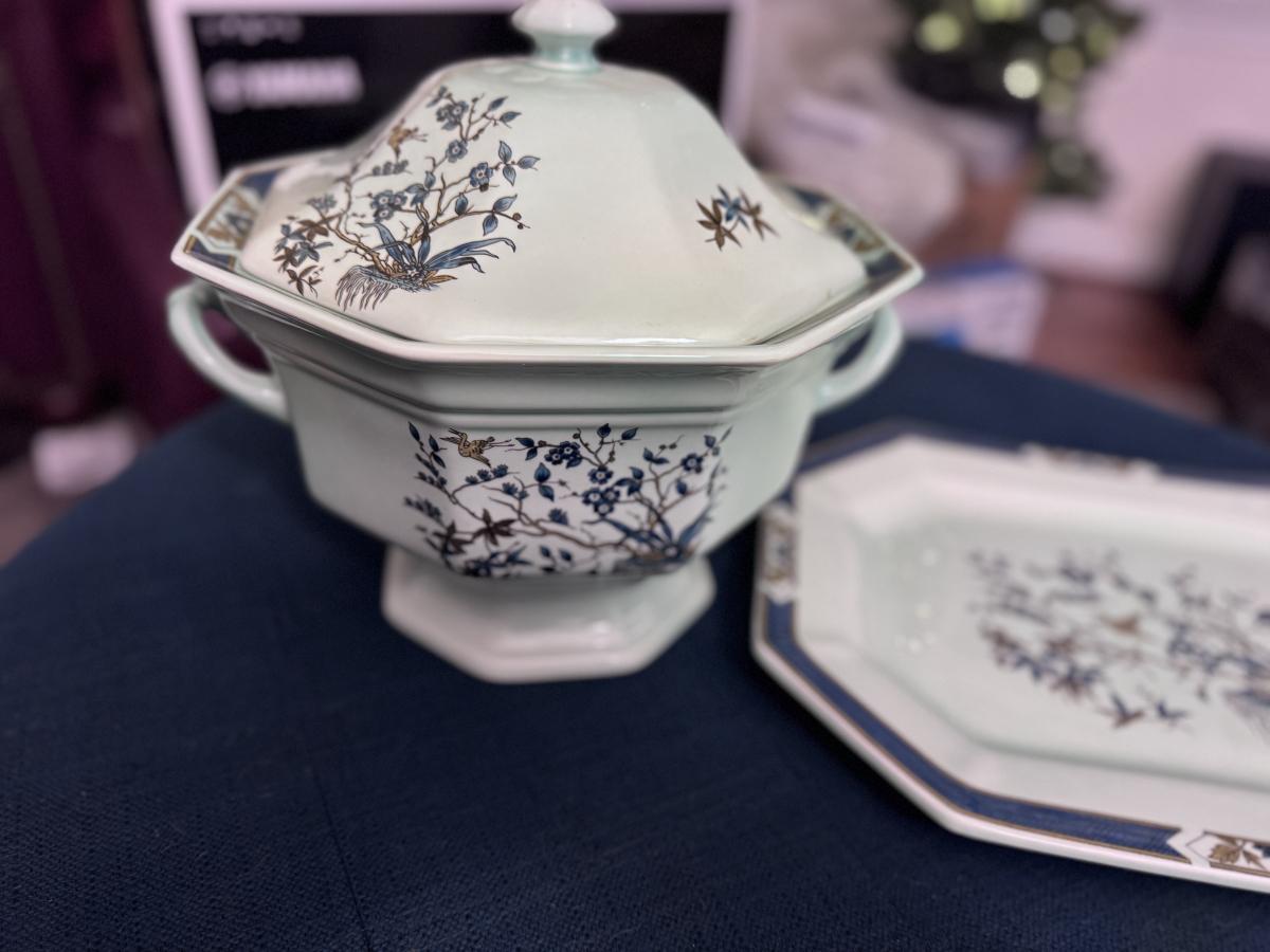 Vintage Ming Toi Porcelain Dinnerware Set – Blue & Gold Floral – Large Service with Tureen & Platters